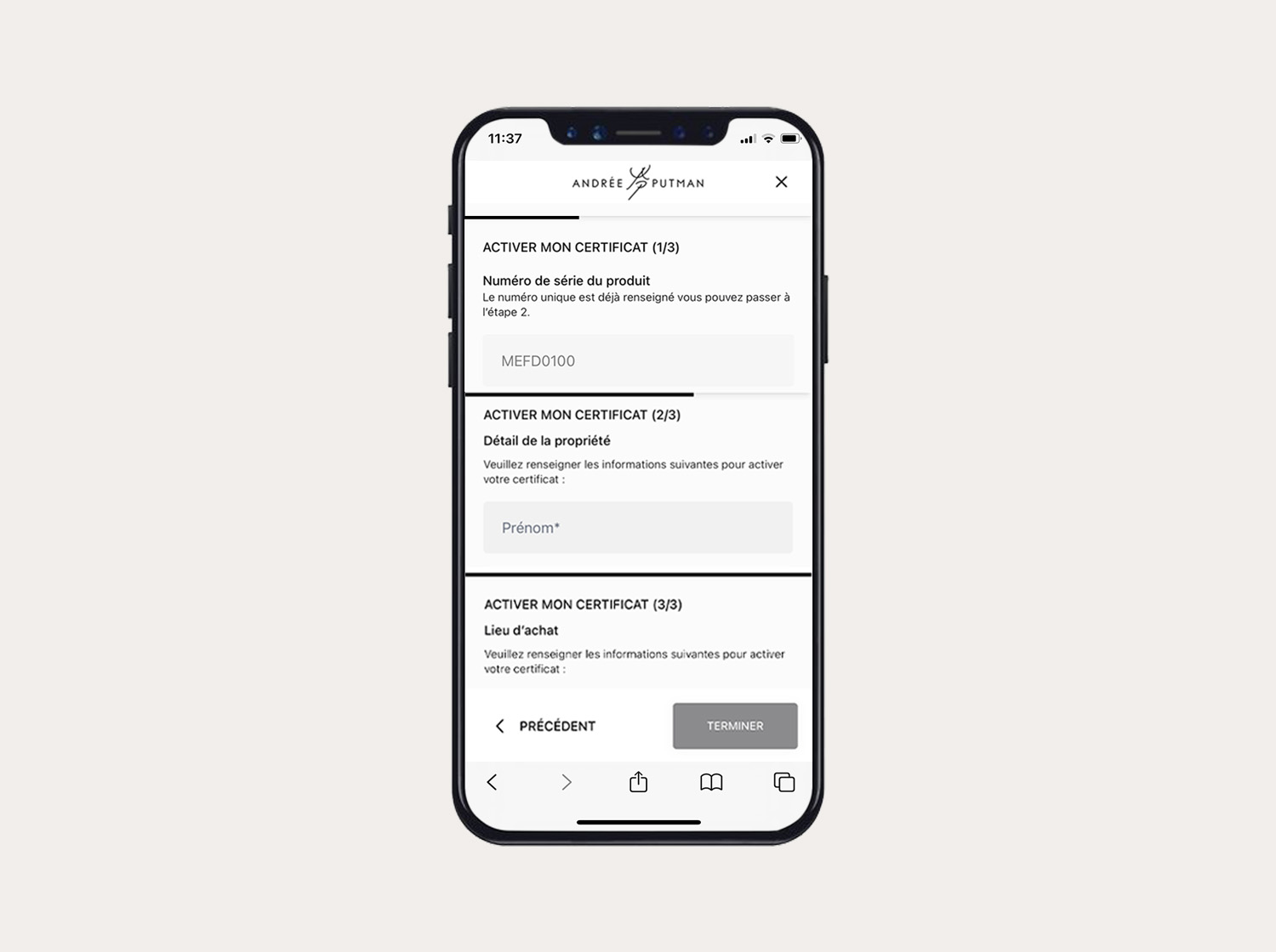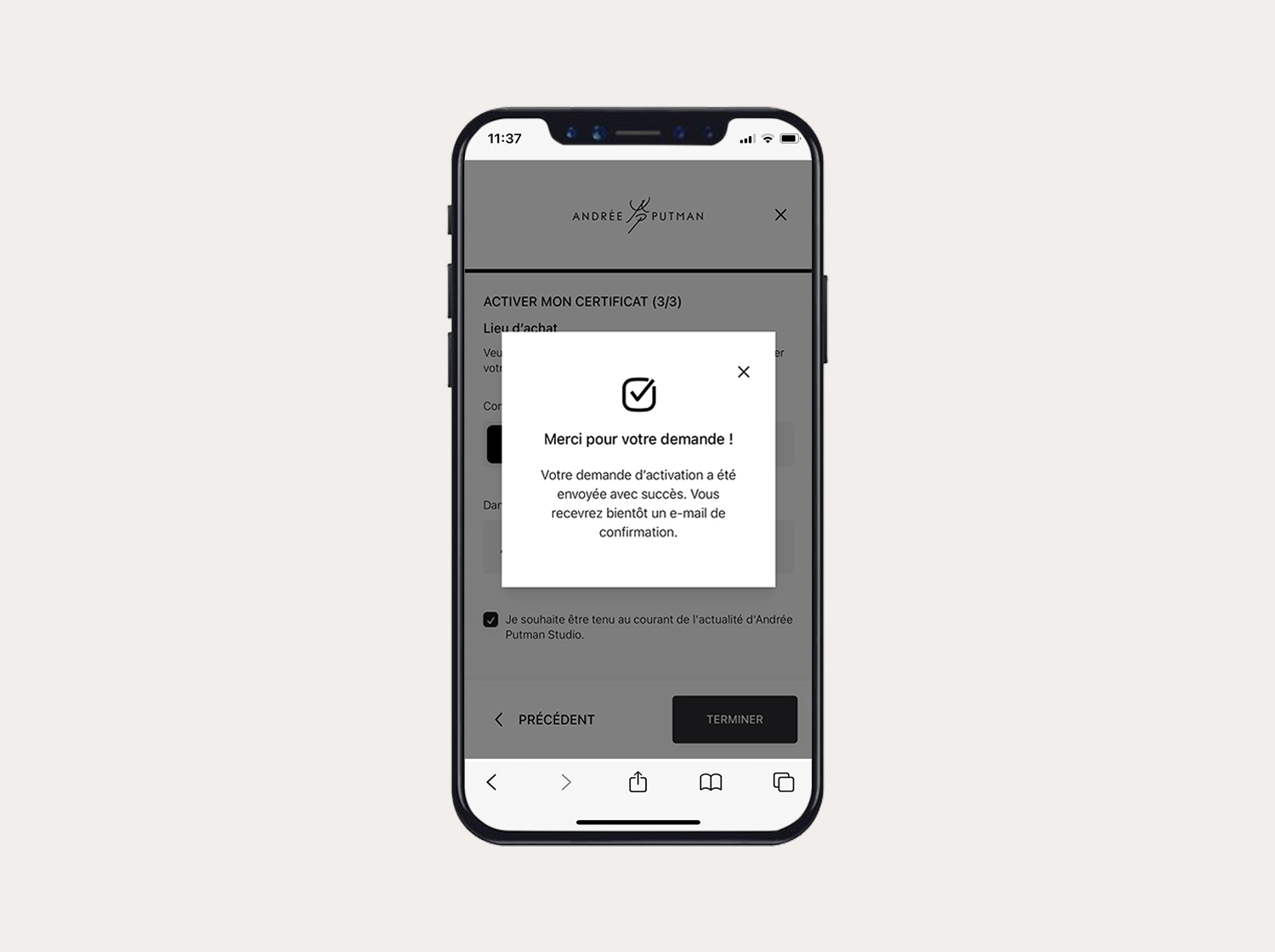 Vous serez automatiquement redirigé vers la page de demande d’activation du certificat de propriété.