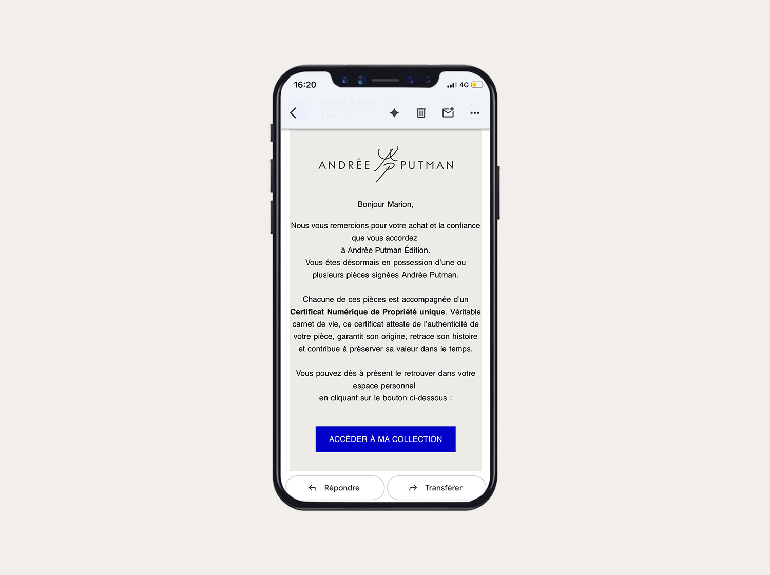 Depuis votre compte Andrée Putman, vous accédez à votre collection, qui regroupe :