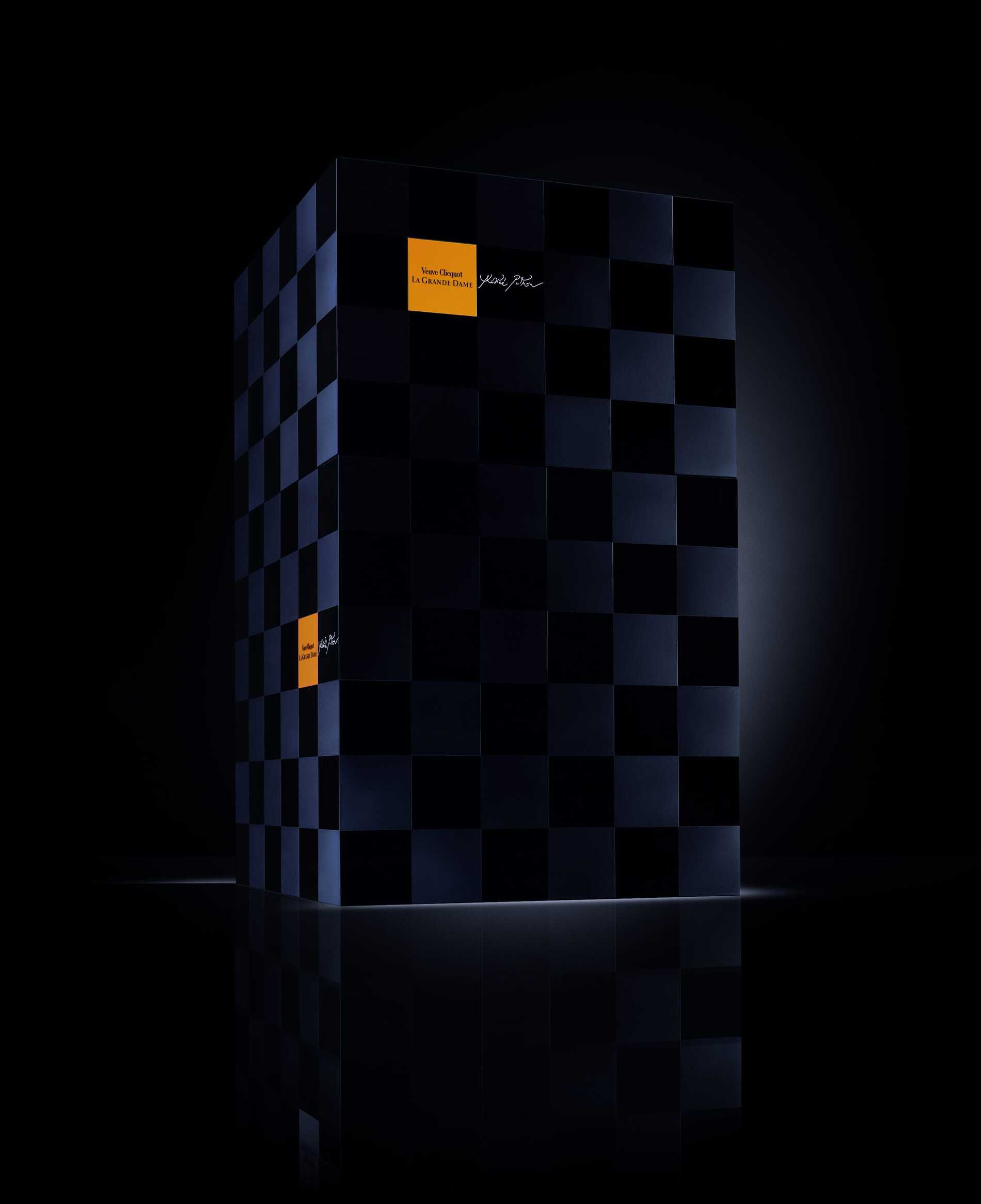 In 2006, Veuve Clicquot entrusted Andrée Putman with the design of the packaging for its exceptional cuvée, La Grande Dame. For this project, Putman reinterpreted the champagne house’s aesthetic through a play of subtle geometry. The box features a checkerboard pattern in matte and glossy black, accented with orange-yellow touches recalling the iconic Clicquot hue, creating a striking visual elegance.