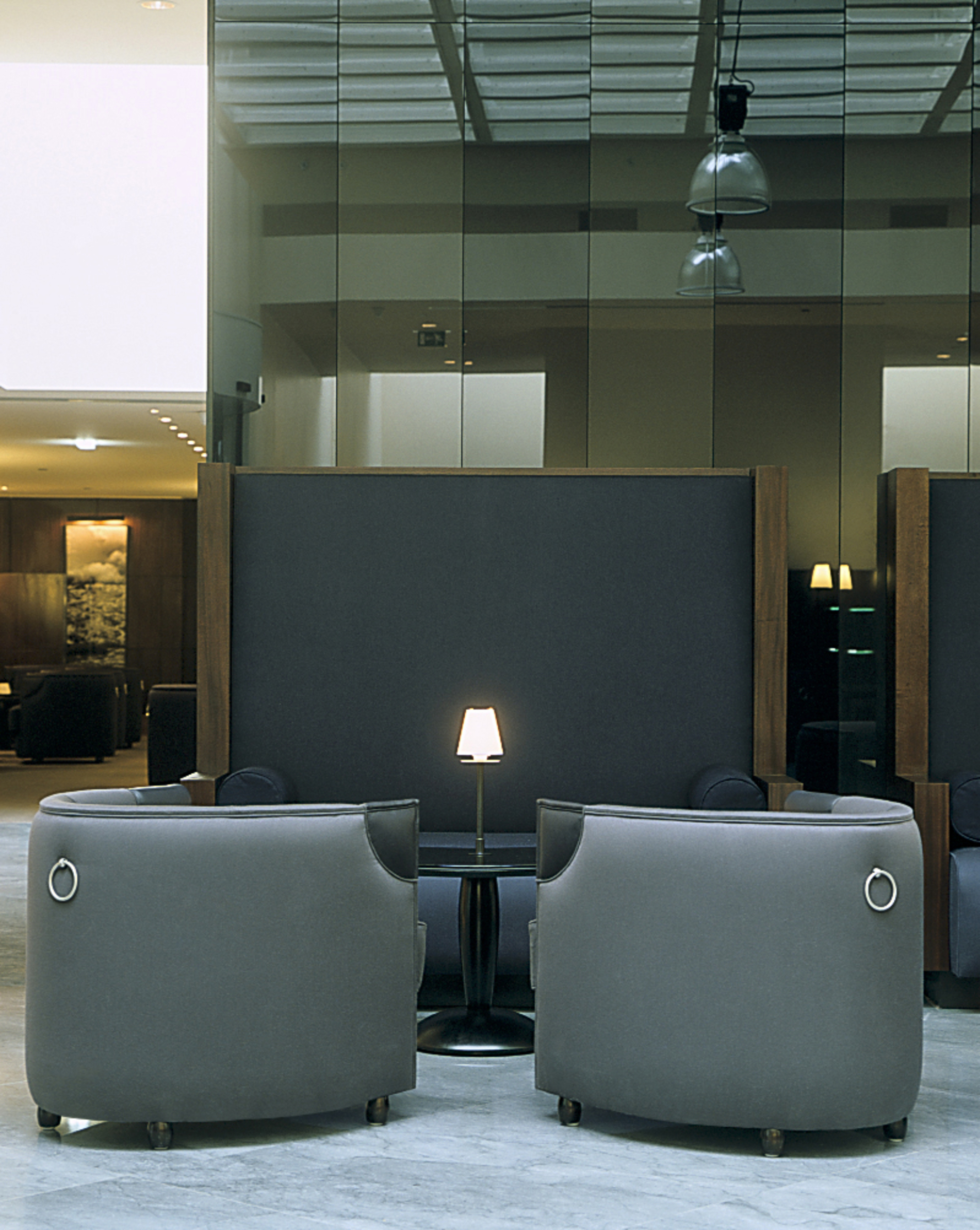 In 1995, Andrée Putman designed the interiors of the Sheraton at Charles de Gaulle Airport, an ambitious project located at the heart of Terminal 2. Conceived as a haven of calm within the flow of air travel, the hotel embodies a serene luxury based on fluidity, light, and restraint.