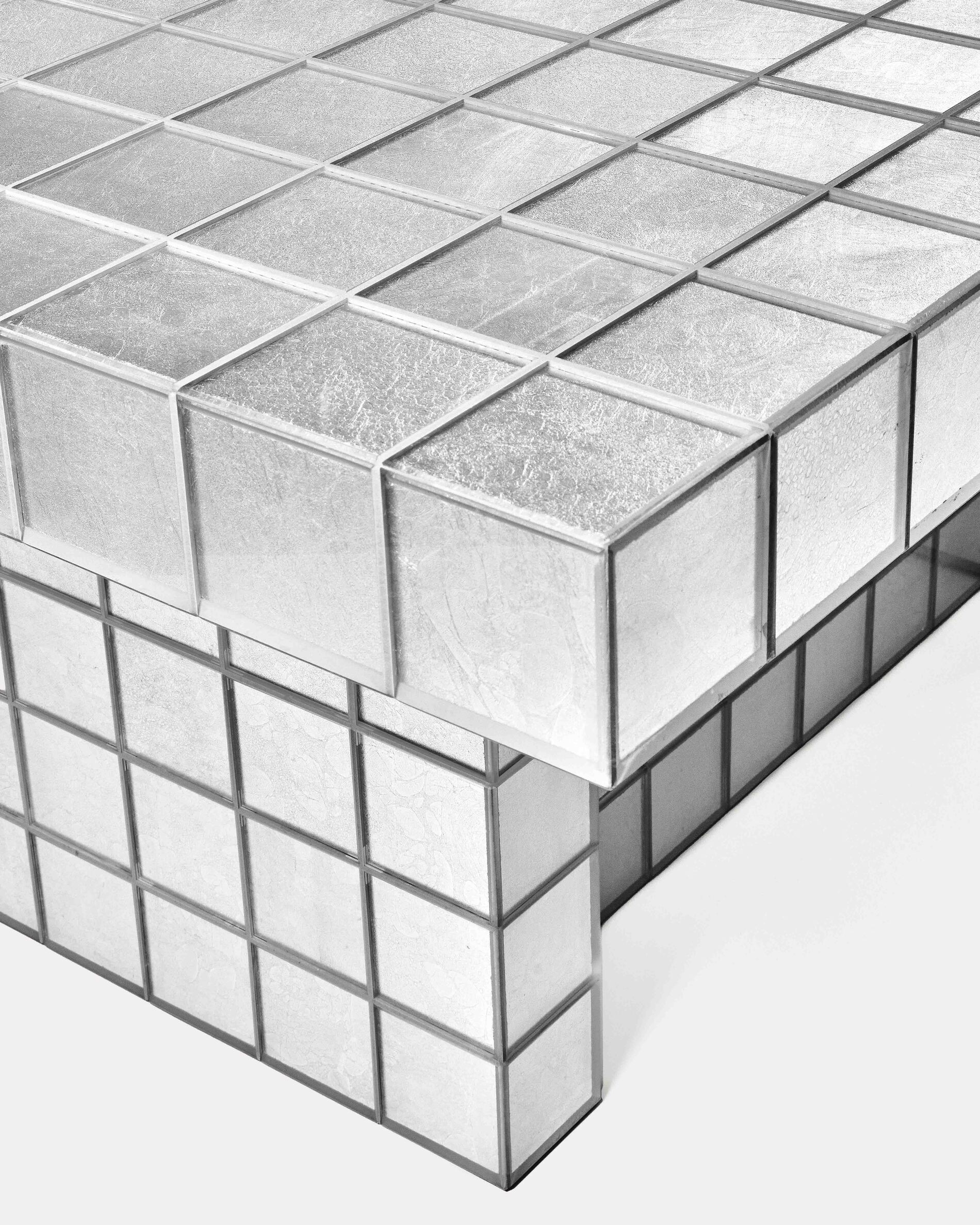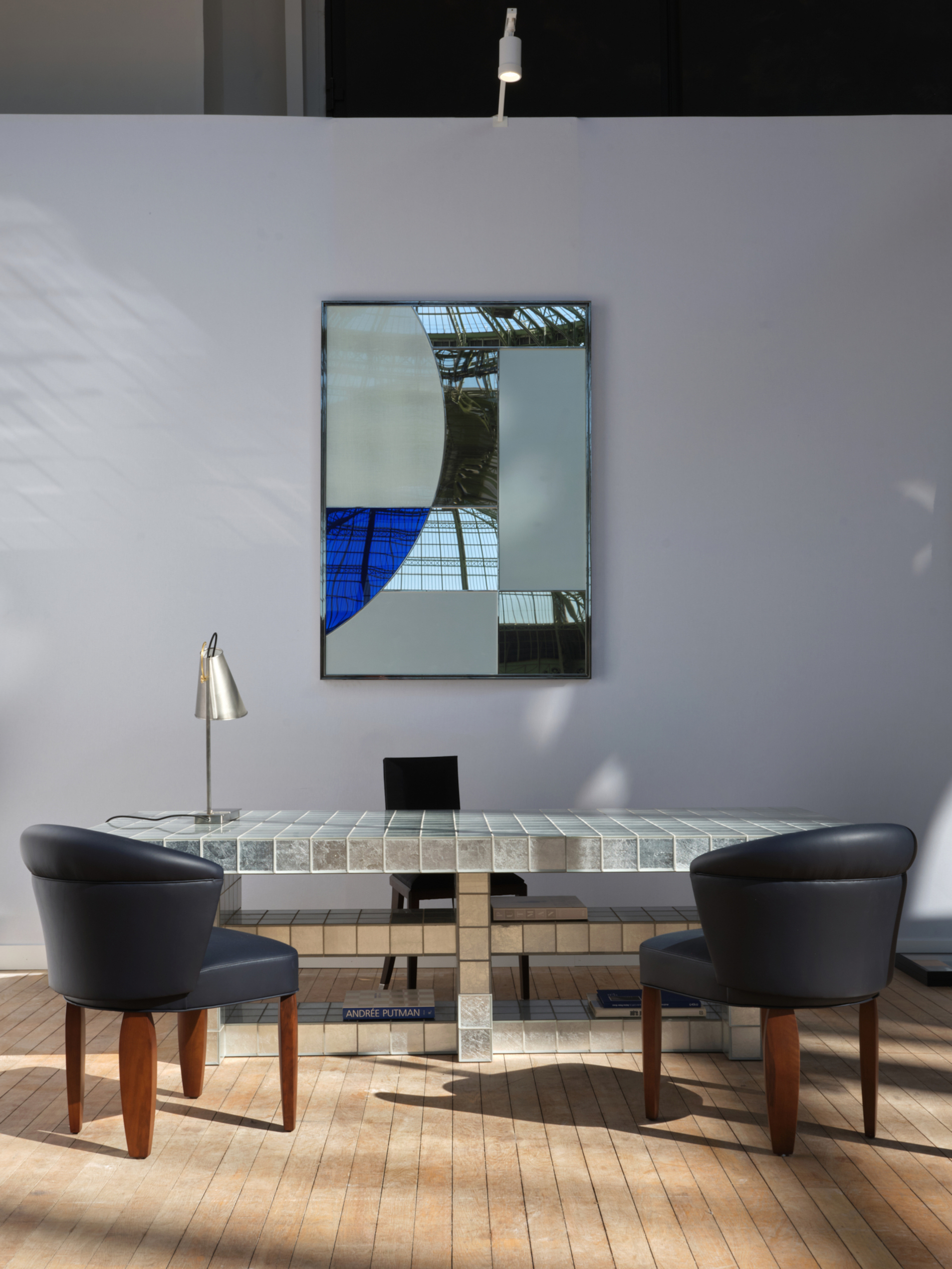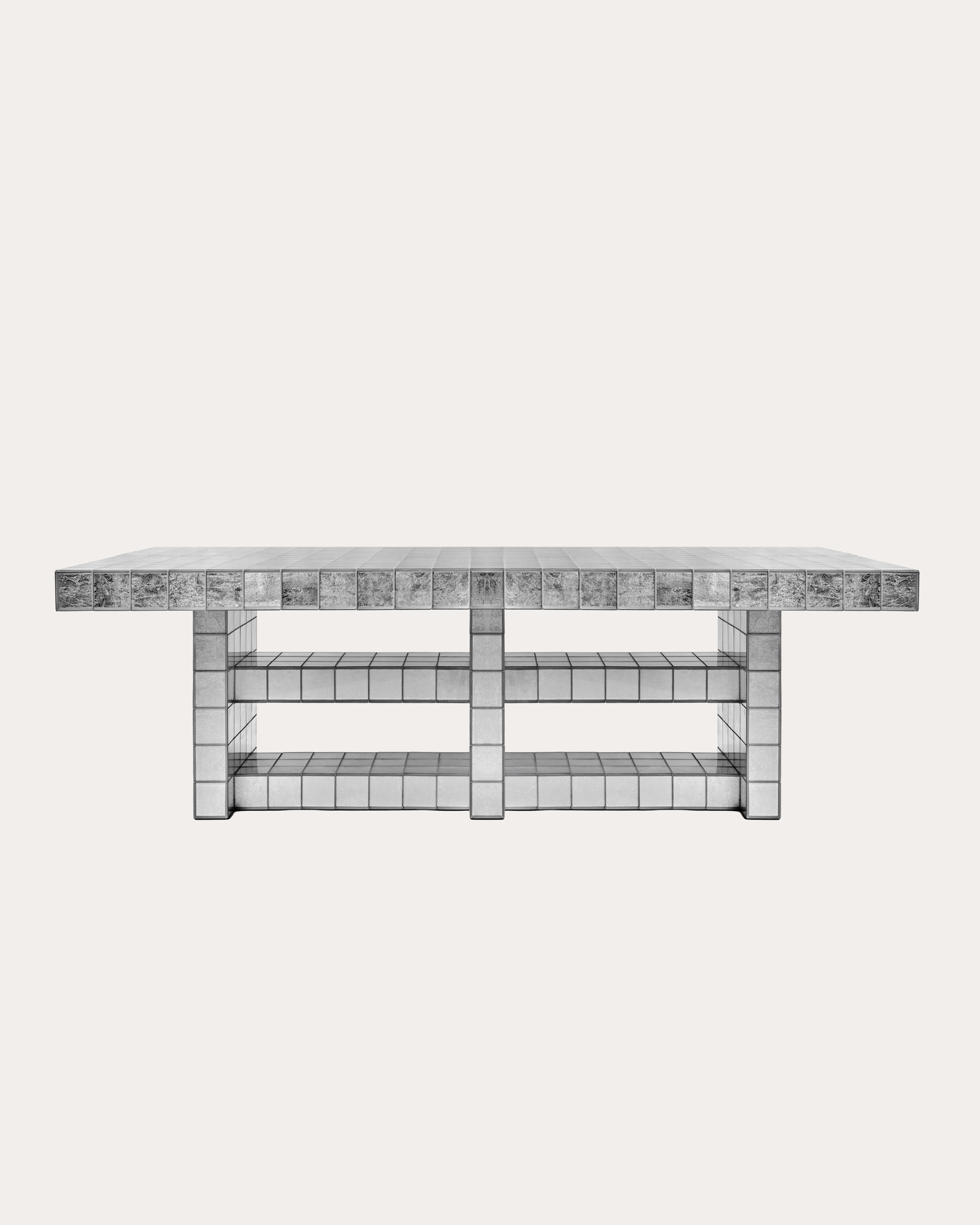 As part of the celebration of Andrée Putman’s centenary, the Studio Andrée Putman has chosen to reinterpret the Mille et un carré table by adorning it with silvered tiles. This variation introduces a new sensory dimension: reflections come alive, light fragments, and the surface becomes a true field of visual interplay.