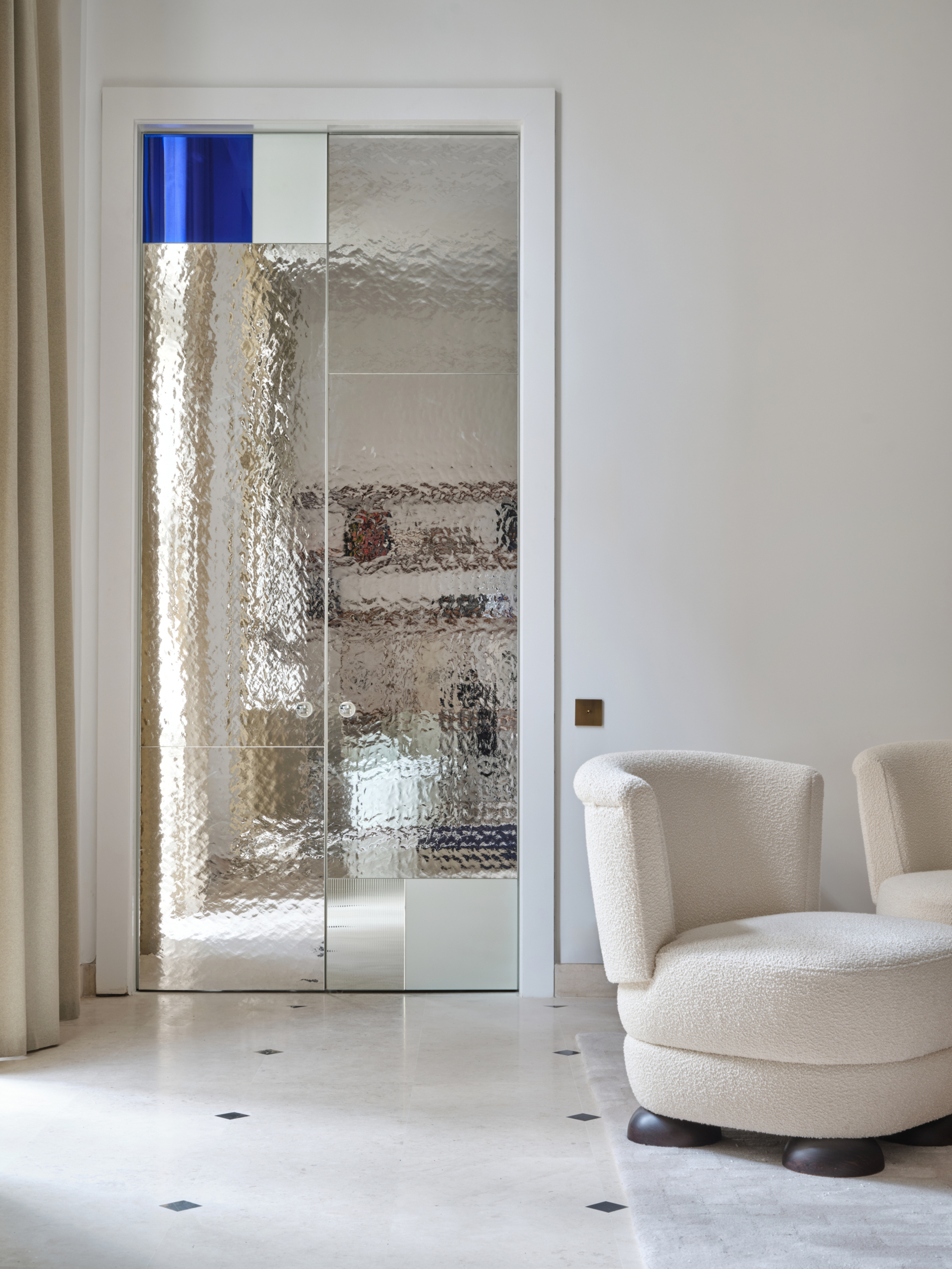 The Petite Ourse armchair stands out with its soft, generous lines, firmly grounded on four half-sphere legs. Its bouclé wool pairs with a stained ash structure, blending rounded volumes, comfort, and geometric precision. A timeless piece where noble materials and carefully balanced proportions embody the signature Putman aesthetic.