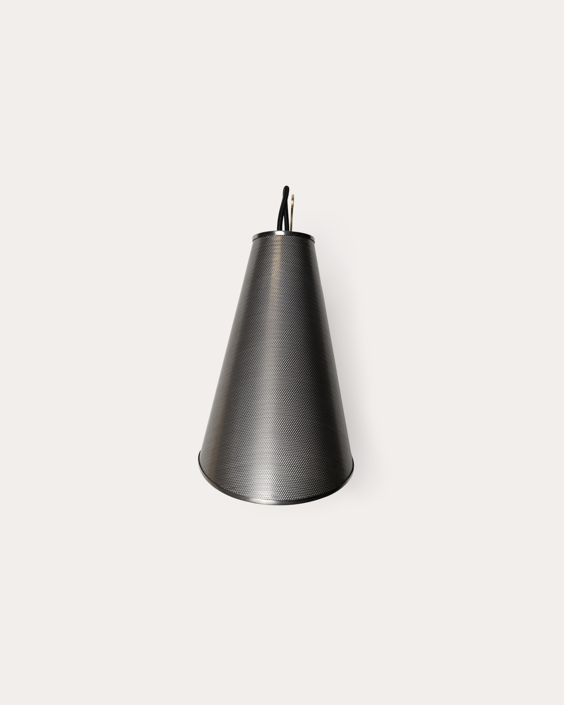 The Compas dans l’Oeil lighting range is built on a design of great clarity, where simple geometric forms combine with balanced precision. Brushed stainless steel, satin brass and perforated metal mesh create a harmonious silhouette, while the pivoting shade allows the light to be directed with subtle finesse.