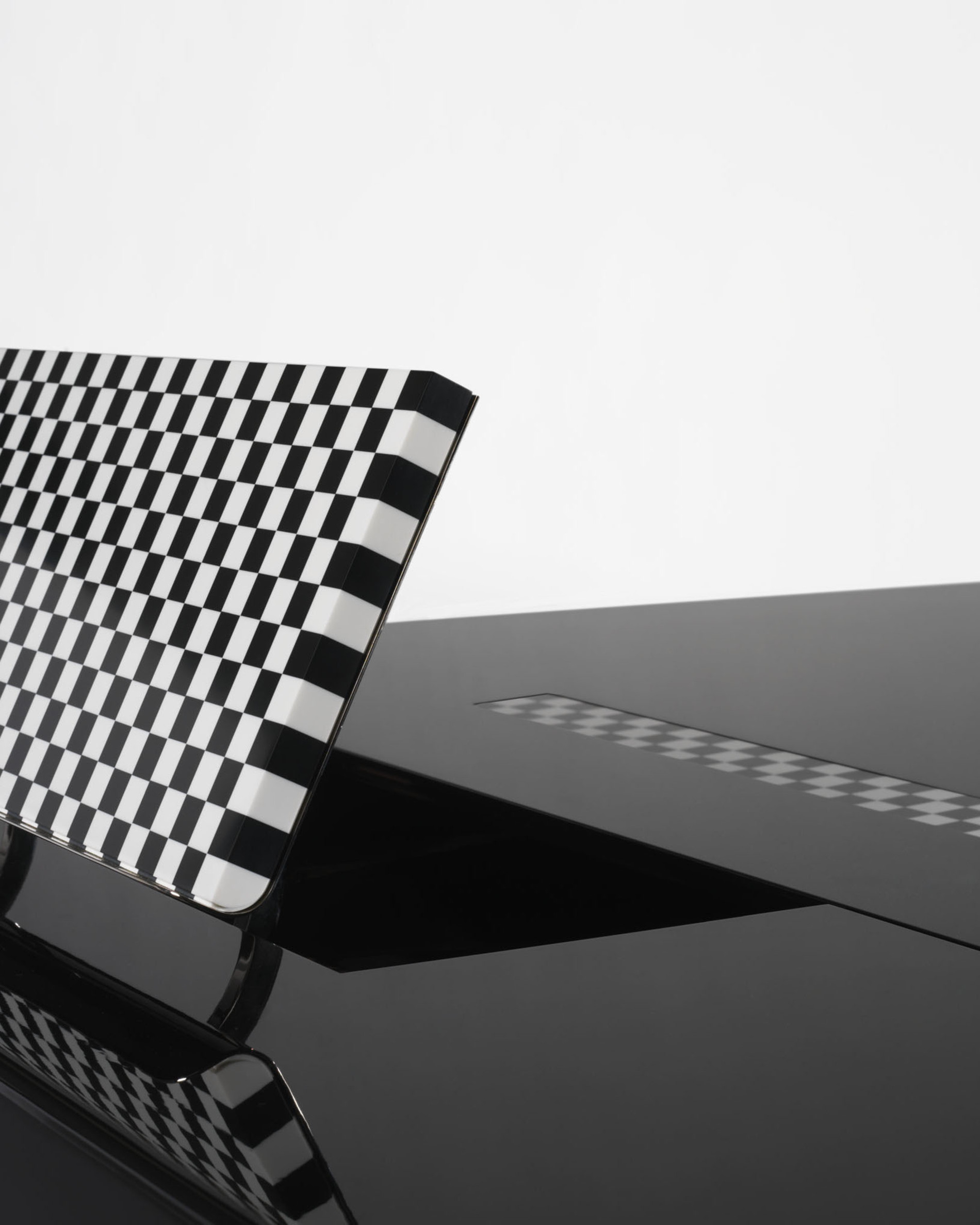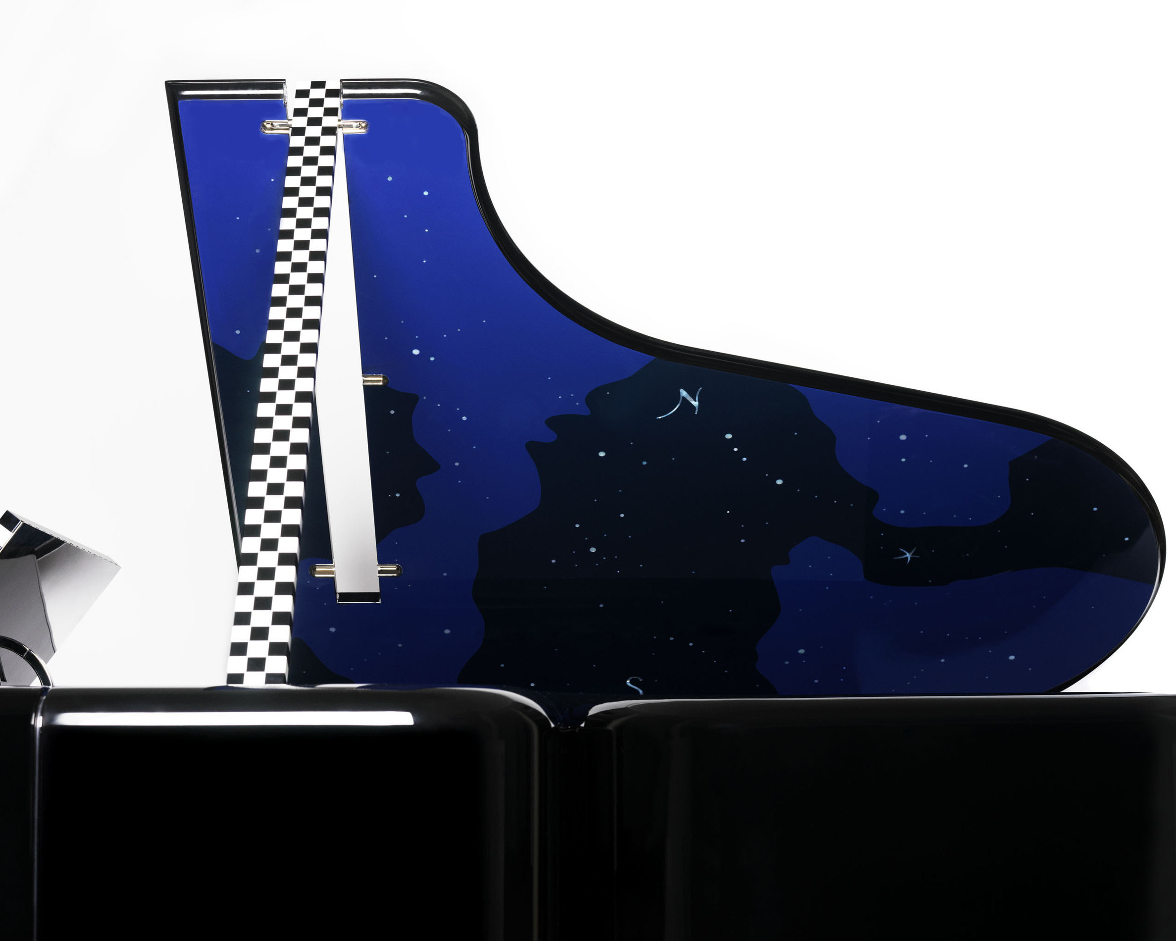 Sa surface sombre est ponctuée d’une constellation de points lumineux évoquant un ciel étoilé, transformant l’instrument en paysage cosmique. Entre rigueur formelle et poésie visuelle, Andrée Putman fait du piano un objet contemplatif autant qu’un instrument de musique. Avec Voie lactée, elle prolonge sa recherche d’un design essentiel, où la simplicité des lignes révèle la puissance évocatrice de la lumière et de la matière.