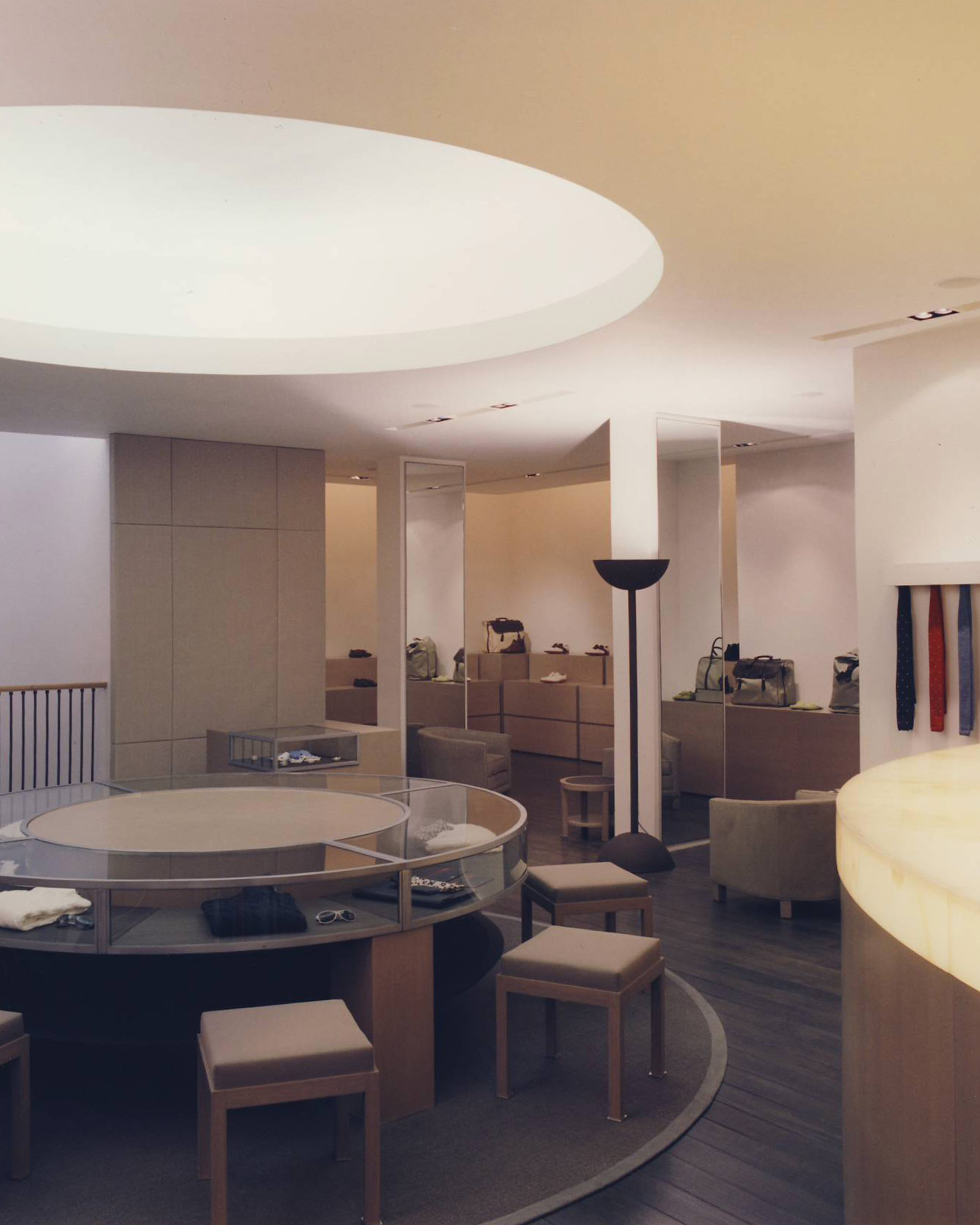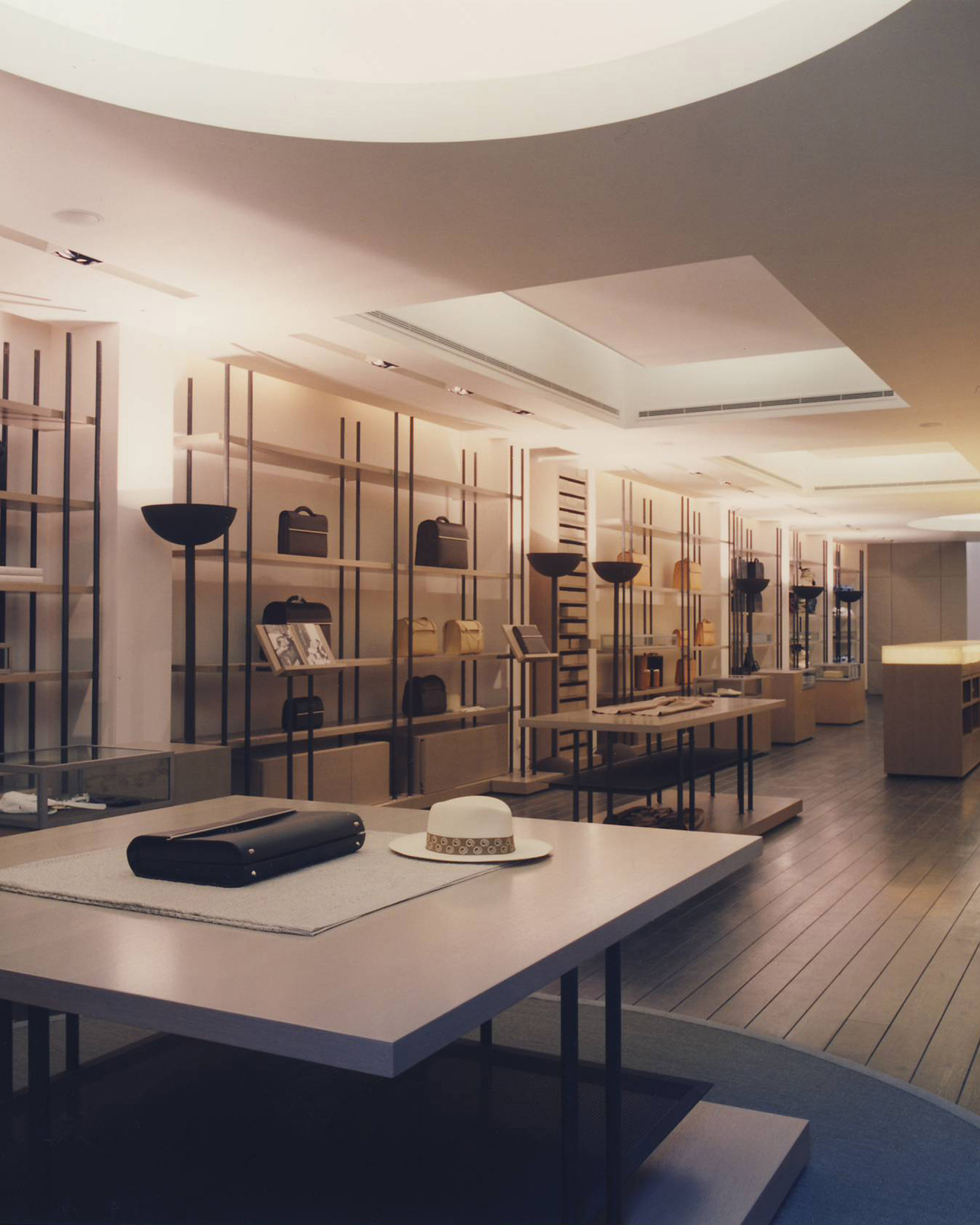 En 2000, Connolly confie à Andrée Putman la conception de sa boutique londonienne, un écrin raffiné dans l’effervescence du commerce de luxe. L’espace met en valeur l’artisanat et les cuirs iconiques de la maison dans une atmosphère à la fois somptueuse et discrète. Les lignes pures, les proportions maîtrisées et les matériaux nobles composent un univers élégant, où chaque objet trouve sa place. Ici, le luxe réside dans la justesse : un lieu clair et équilibré, pensé pour magnifier les créations de Connolly avec la sobriété intemporelle de Putman.