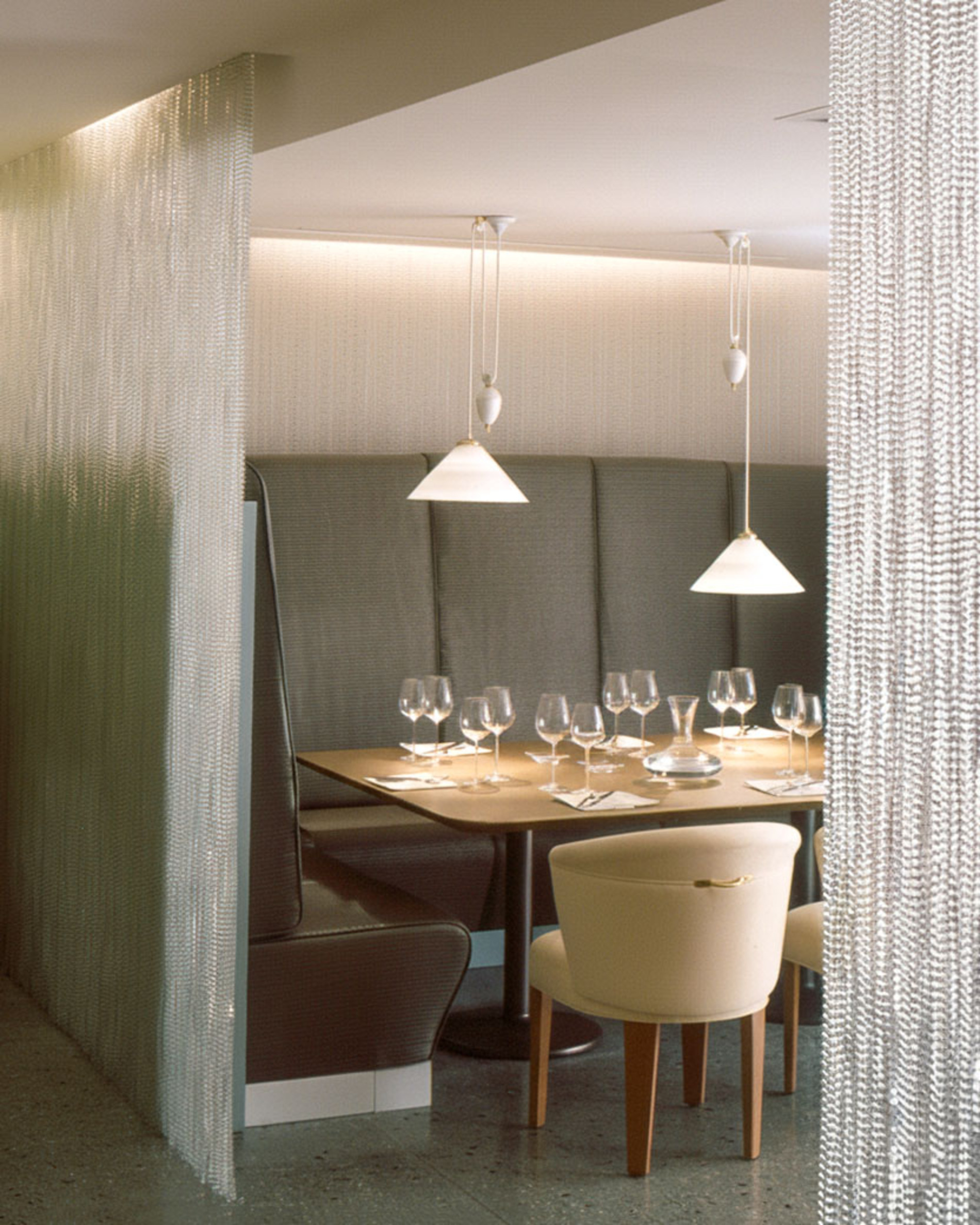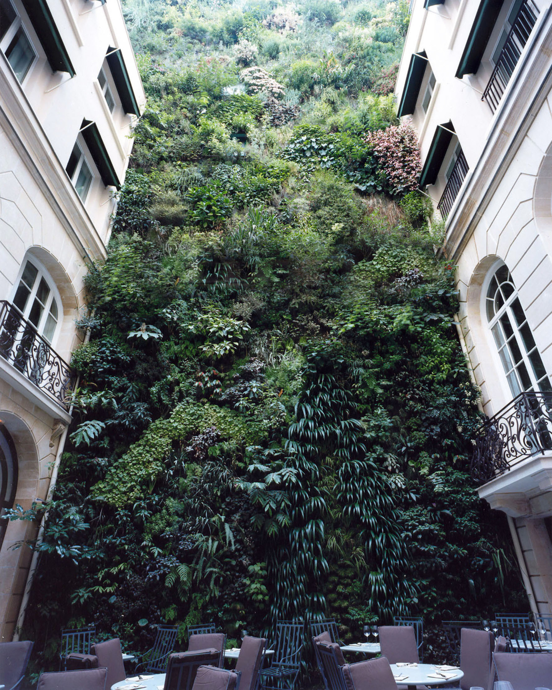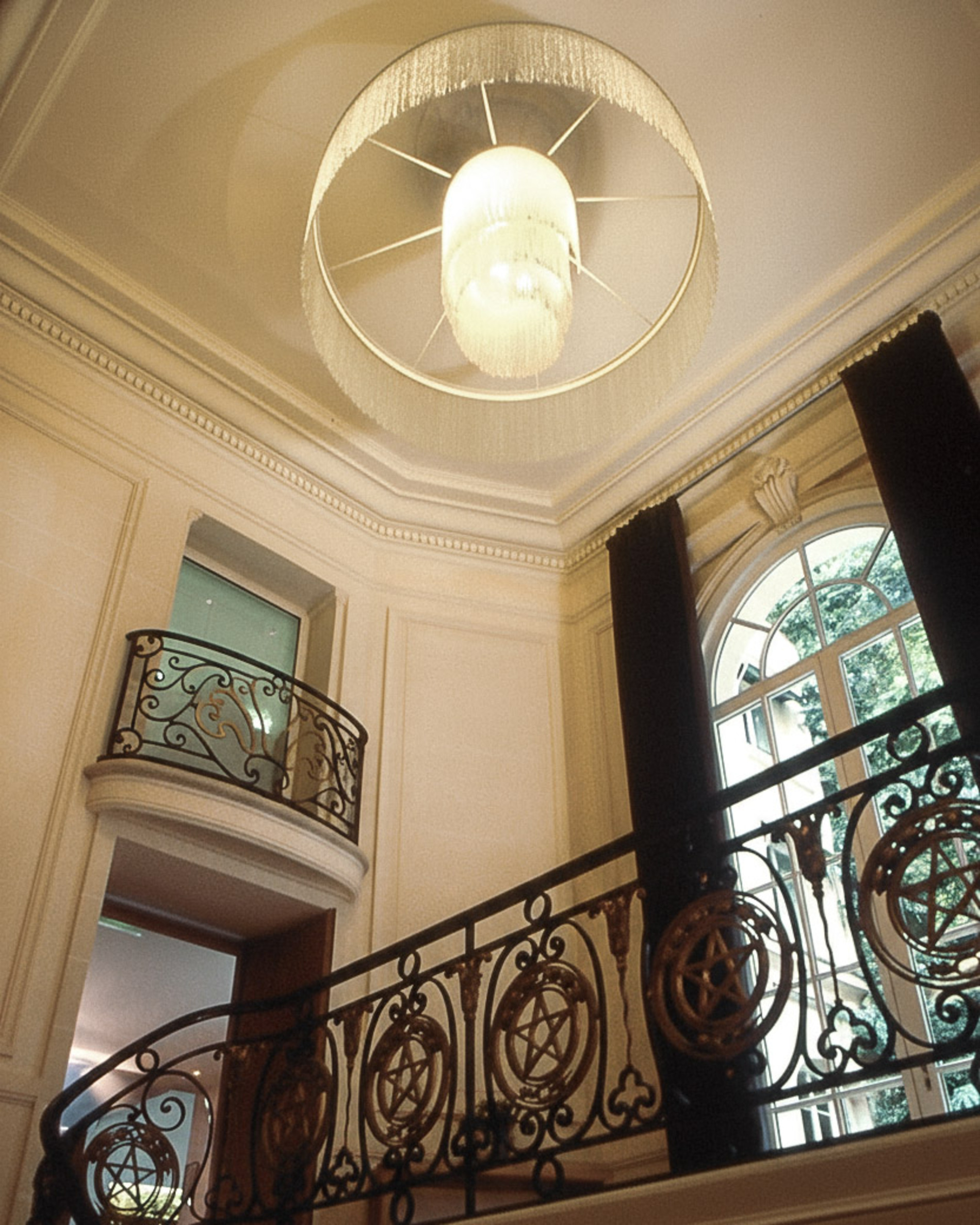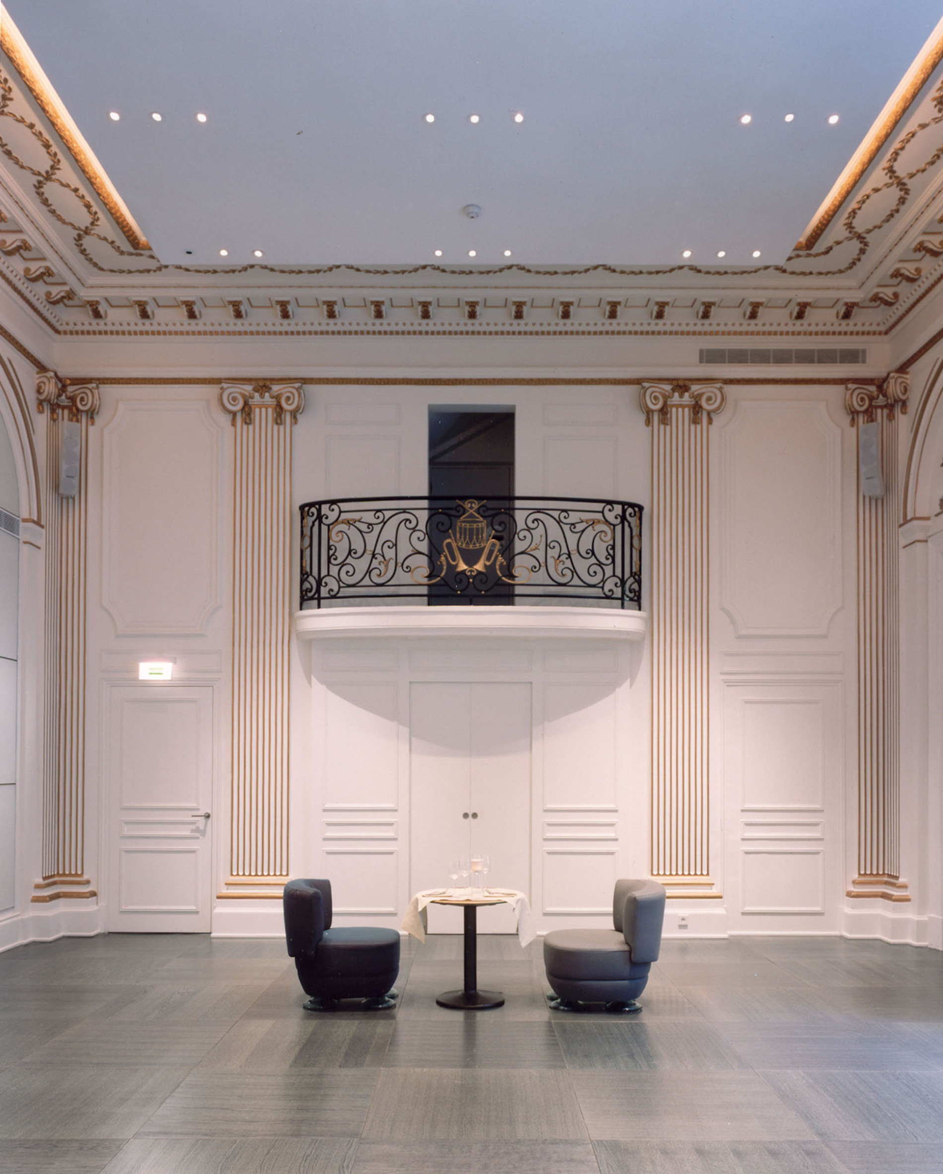 Situé 49 rue Pierre-Charron, Pershing Hall renaît en 2001 sous le regard d’Andrée Putman, qui transforme cet hôtel particulier historique en un lieu à la fois discret et vibrant. Elle redessine les espaces de vie autour d’un patio ouvert sur le ciel, véritable cœur végétal de plus de 30 mètres, conçu avec Patrick Blanc, dans lequel plus de 300 espèces exotiques élèvent le regard. Les salons, les chambres et les espaces communs s’équilibrent entre lumière douce et proportions raffinées. Matériaux nobles, lignes sobres, atmosphère feutrée : la palette exprimée par Putman oscille entre élégance tranquille et confort raffiné.
