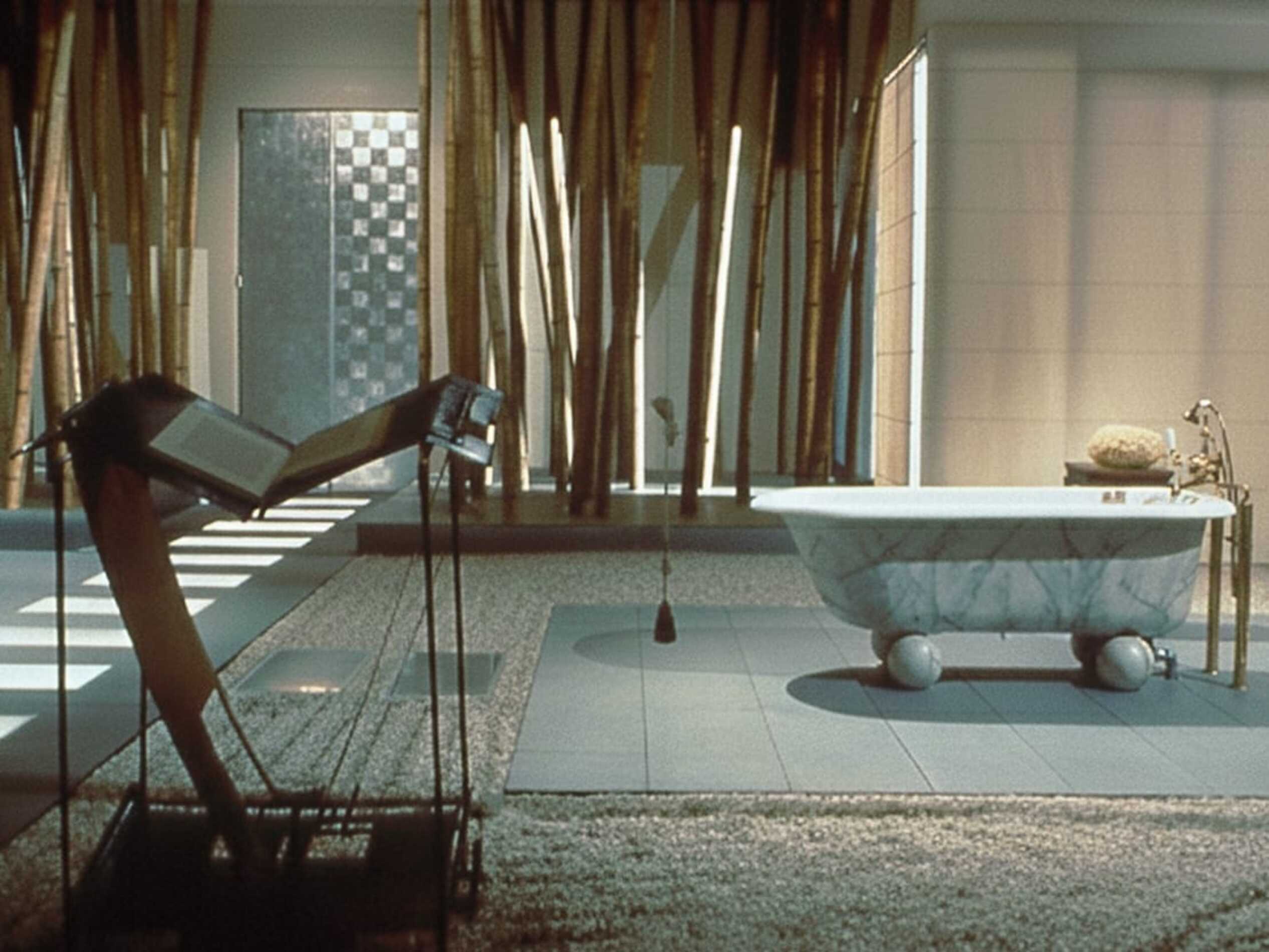 En 1995, le cinéaste Peter Greenaway confie à Andrée Putman la conception des décors de The Pillow Book, tourné à Hong Kong. L’univers visuel du film, entre sensualité et rigueur graphique, trouve dans son travail une résonance singulière. Putman y compose des espaces dépouillés mais d’une grande intensité plastique, où les matières, les perspectives et les cadrages deviennent partie intégrante du récit. Les intérieurs se déploient comme des architectures silencieuses : jeux de transparence, structures géométriques, dialogues entre ombre et lumière. Dans cet écrin, les corps et les calligraphies s’inscrivent comme des œuvres vivantes, prolongeant la mise en scène jusque dans le détail du décor. La collaboration entre Greenaway et Putman signe un moment rare où cinéma et architecture d’intérieur se rencontrent pour façonner un langage commun — à la fois visuel, poétique et profondément sensuel.