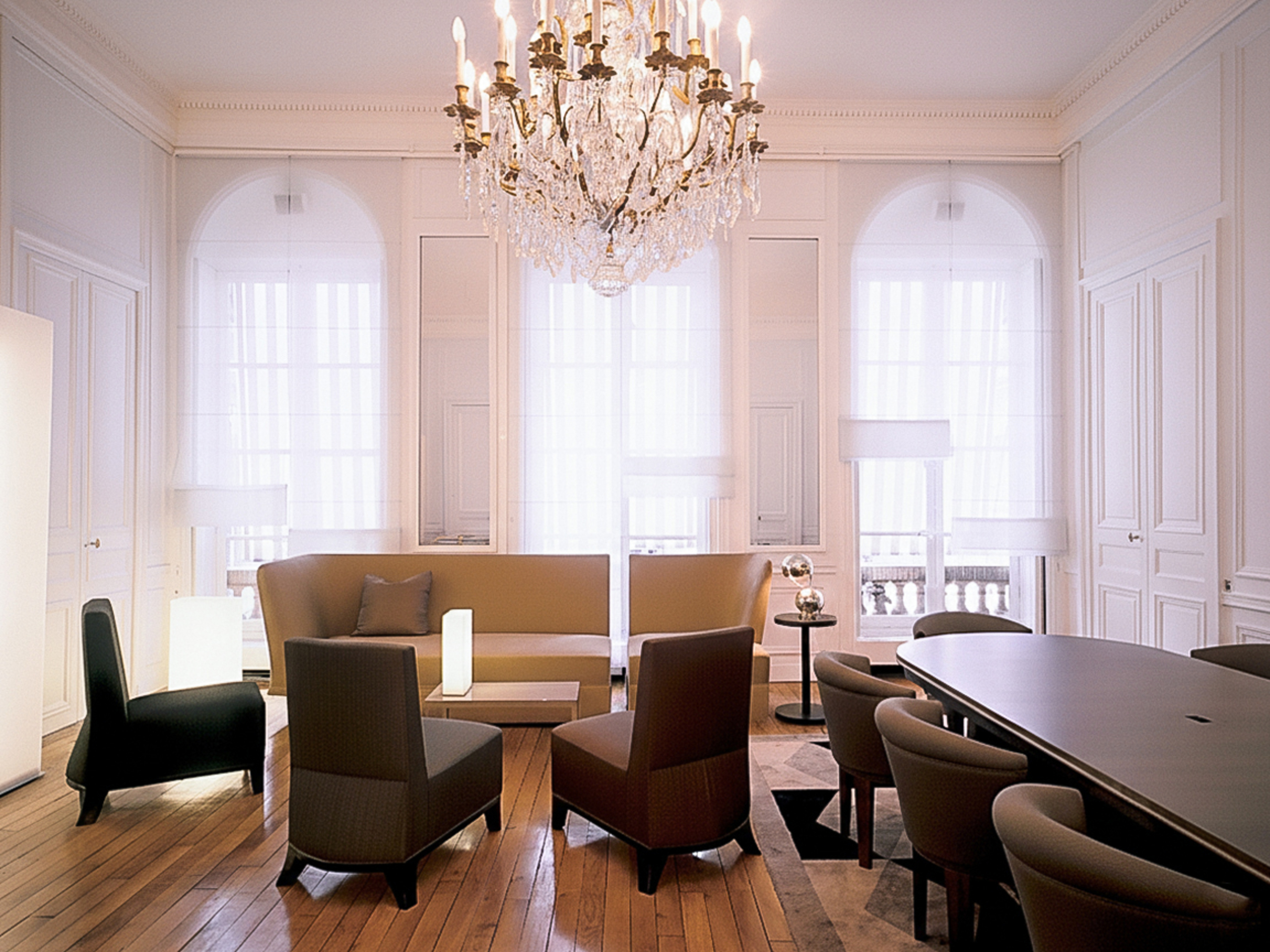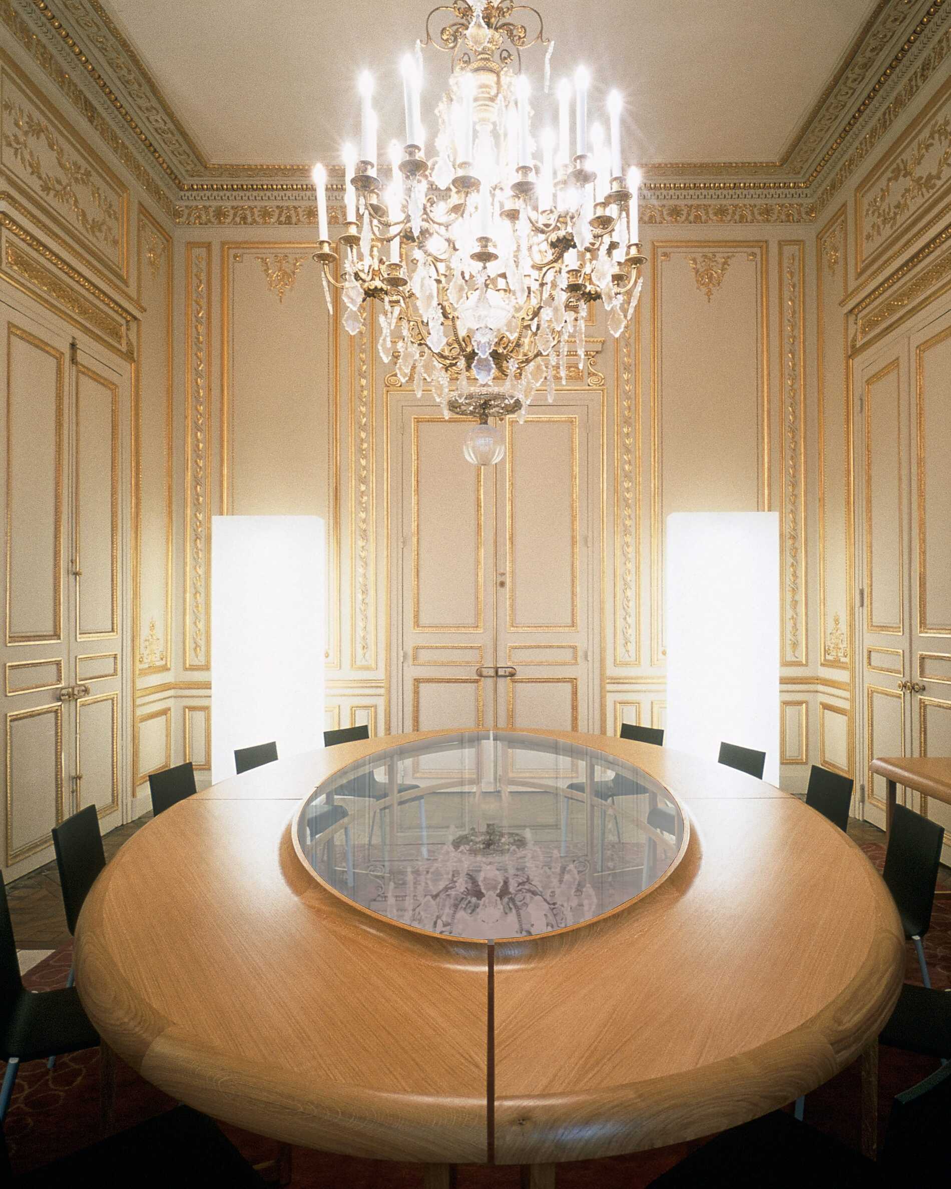 En 2002, Andrée Putman est sollicitée pour l’aménagement du Ministère de l’Éducation nationale à Paris. Elle conçoit des espaces sobres et lumineux, pensés pour favoriser la clarté et la lisibilité, dans un esprit d’ouverture et de modernité. Les circulations sont structurées par de grandes perspectives, offrant une lecture fluide des volumes. Le mobilier dessiné pour le projet traduit une élégance fonctionnelle, associant rigueur et confort. Le choix de matériaux épurés, compose une atmosphère sereine, adaptée à un lieu de réflexion et de décision.