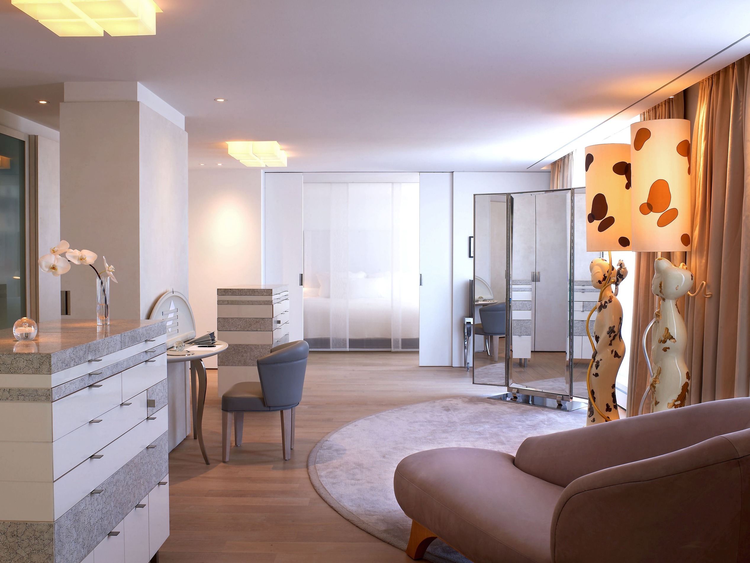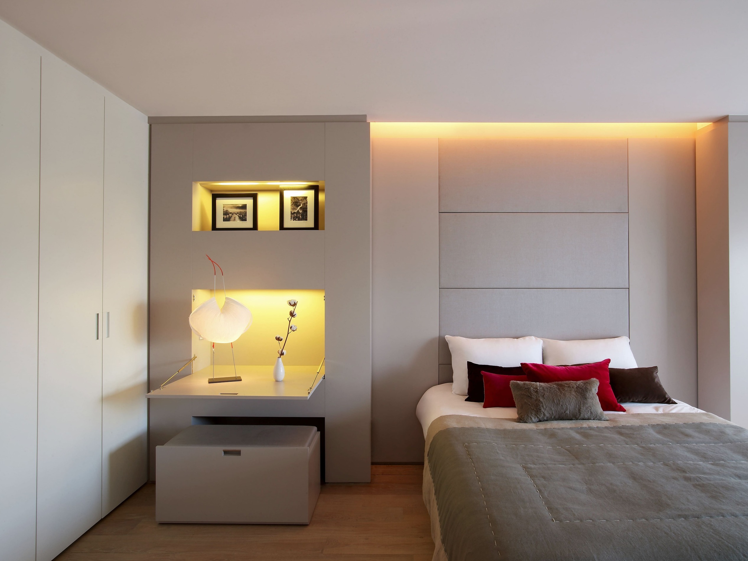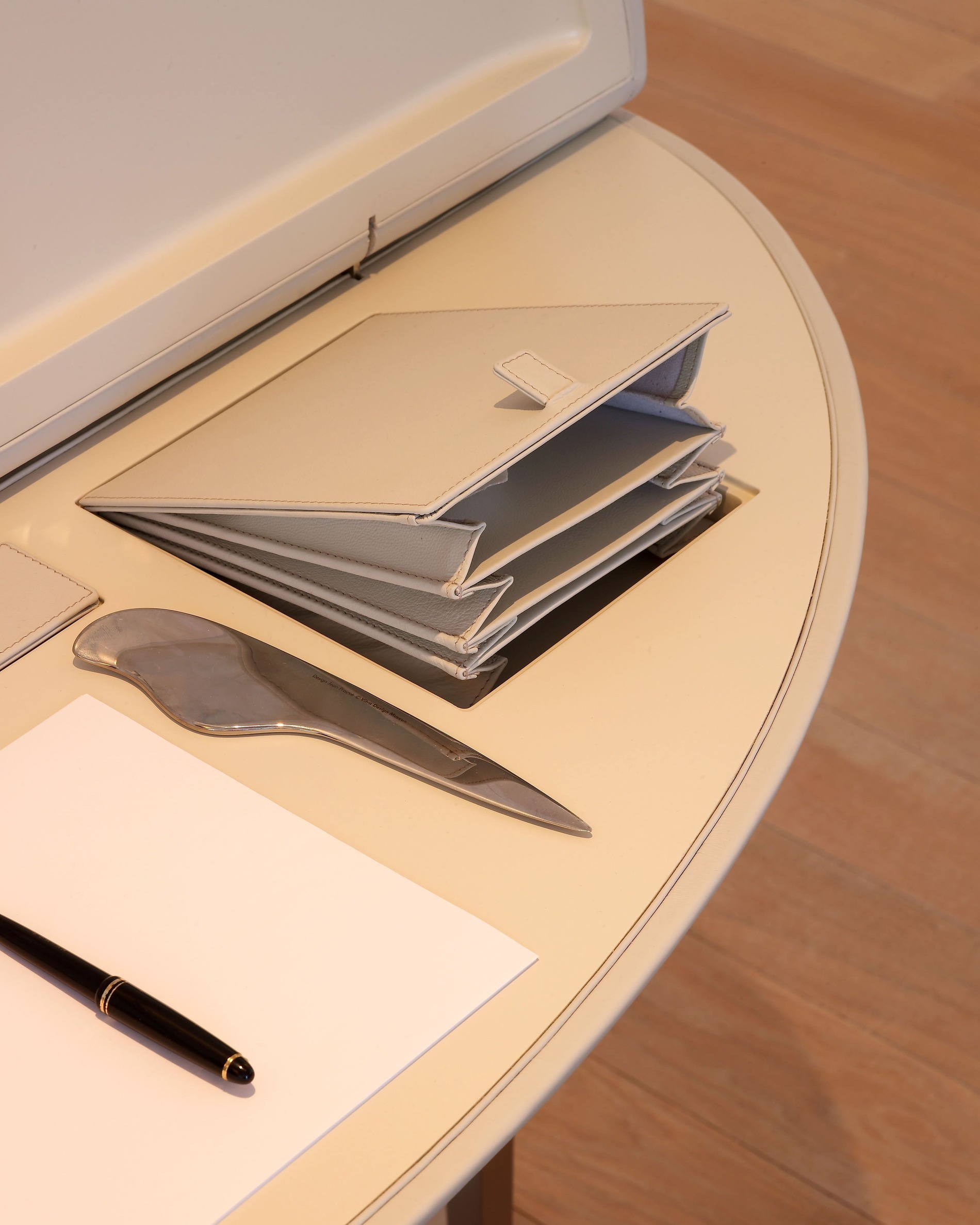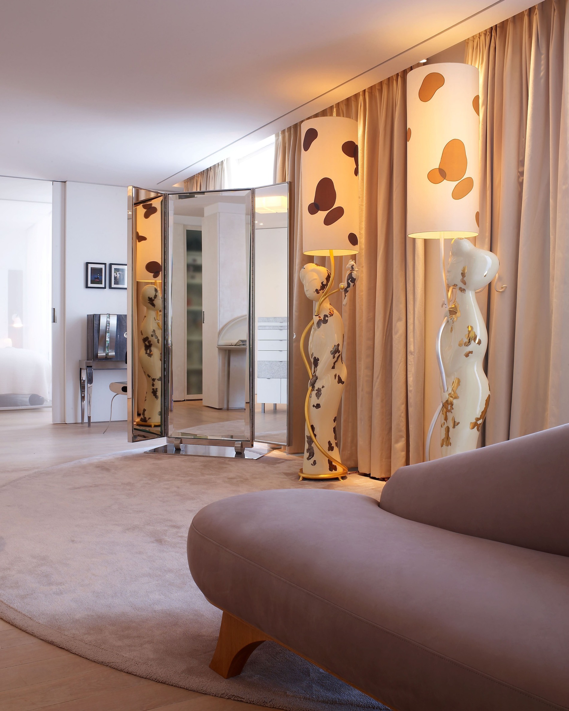 Situé au sommet du Palais du Congo à Bruxelles, l’appartement réalisé en 2008 s’étend sur trois niveaux. L’architecture intérieure y explore les rapports d’échelle et de fluidité, en jouant avec la monumentalité de l’immeuble art déco et l’intimité des espaces domestiques. Au cœur du projet, un vaste salon cathédrale déploie sa hauteur vertigineuse. Le mobilier, travaillé en arc de cercle et en lignes parallèles, vient structurer l’espace sous la grande voûte, tandis qu’un escalier helicoïdal s’élève comme une sculpture et relie les niveaux dans une continuité aérienne. Plus qu’une pièce de réception, ce volume est une scène vivante où chaque espace trouve son usage : contemplation, lecture, partage. L’appartement dans son ensemble s’organise comme une succession de séquences, entre espaces ouverts baignés de lumière et alcôves plus feutrées. La distribution subtile permet de transformer la contrainte d’un lieu en un récit d’équilibre, où l’élan monumental dialogue avec l’usage quotidien.