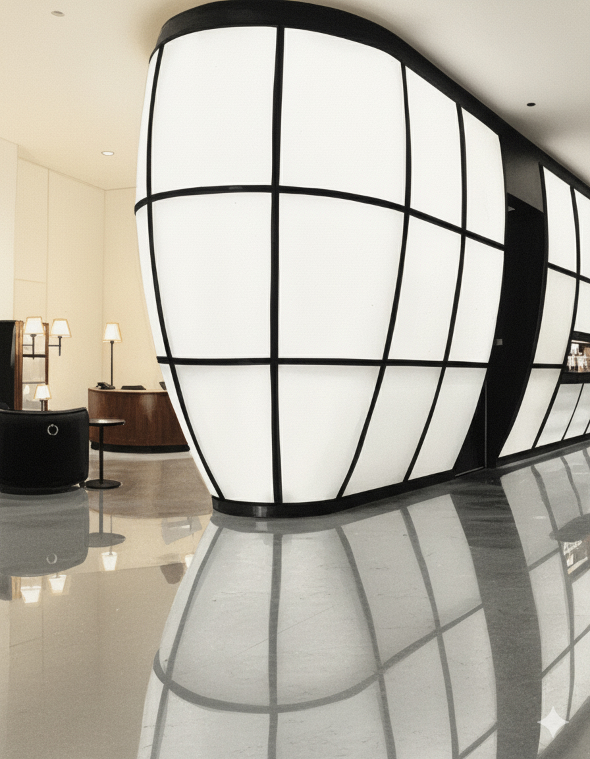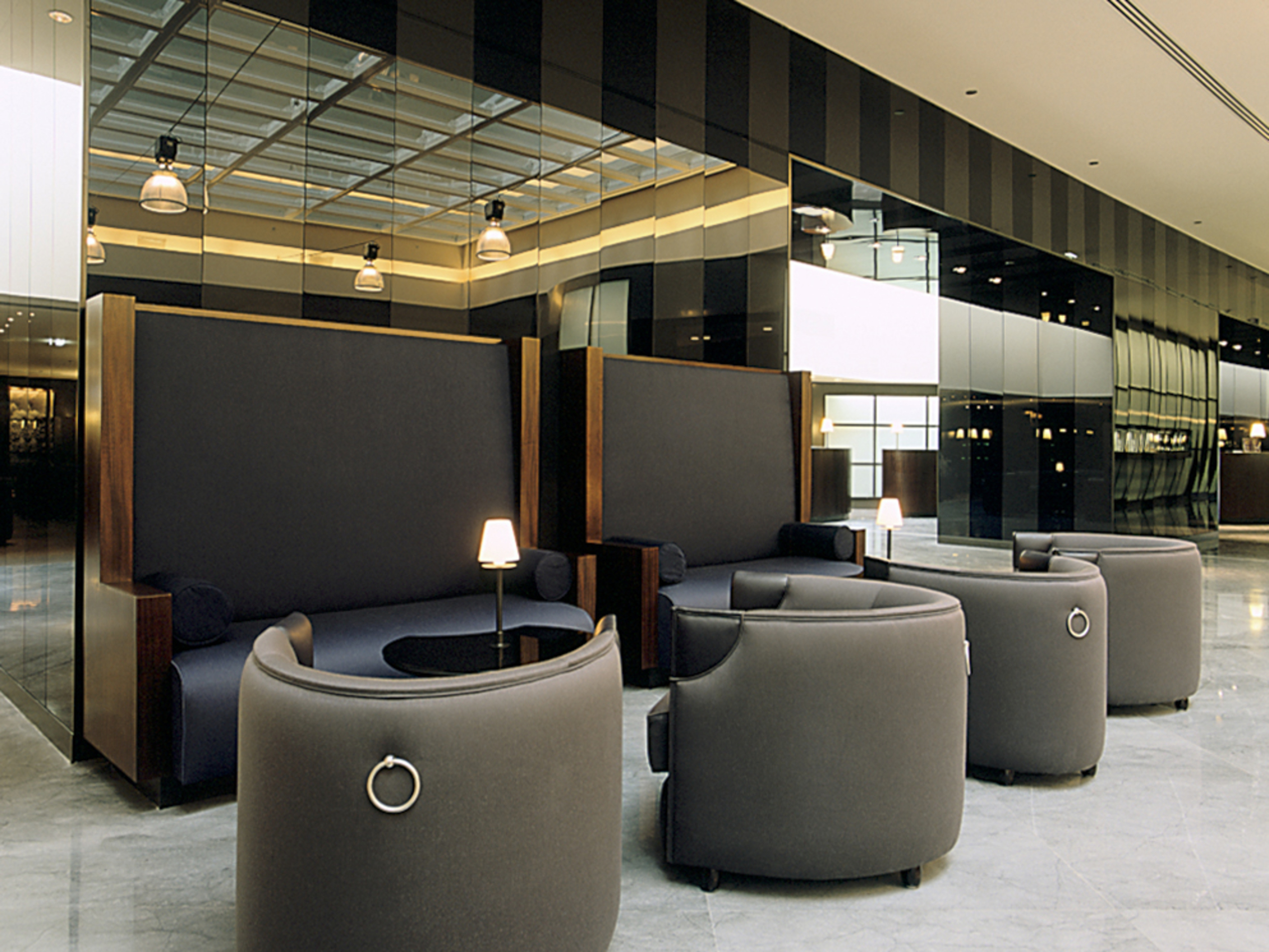 En 1995, Andrée Putman signe les intérieurs du Sheraton de l’aéroport Charles de Gaulle, un projet ambitieux situé au cœur du terminal 2. Pensé comme un havre de calme au sein du flux aérien, l’hôtel traduit l’idée d’un luxe apaisé, fondé sur la fluidité, la lumière et la mesure. Les espaces se déploient autour d’une grande nef intérieure où la transparence et la symétrie guident le regard. Matériaux naturels, tonalités minérales, mobilier sur mesure, tout concourt à créer une atmosphère de sérénité contemporaine, loin de l’agitation du lieu. Ici, chaque perspective évoque le mouvement silencieux d’un voyage, chaque reflet prolonge l’horizon. Le Sheraton devient une parenthèse suspendue entre ciel et terre, un lieu de transition devenu expérience, où l’élégance se fait souffle et la lumière, destination.
