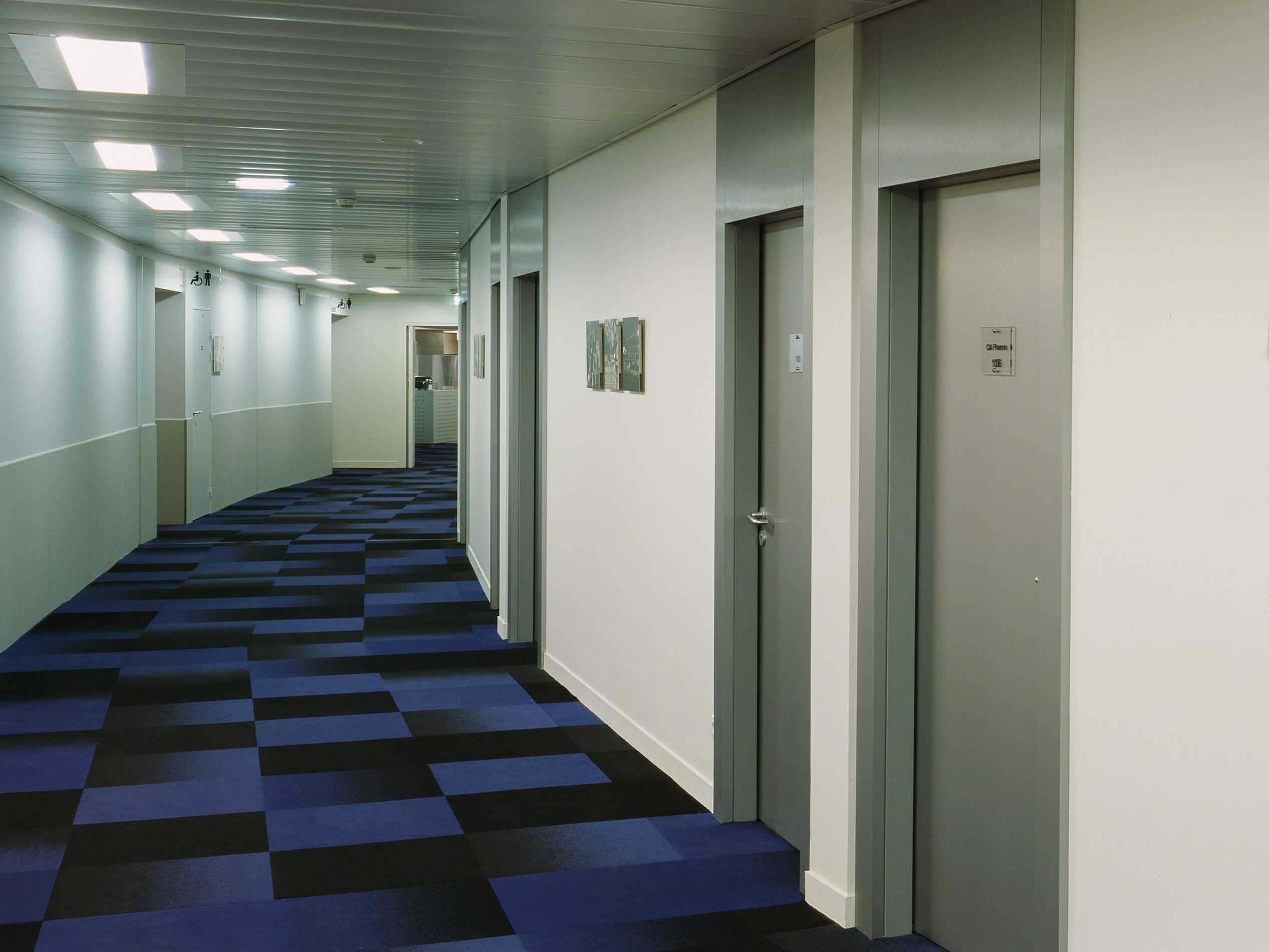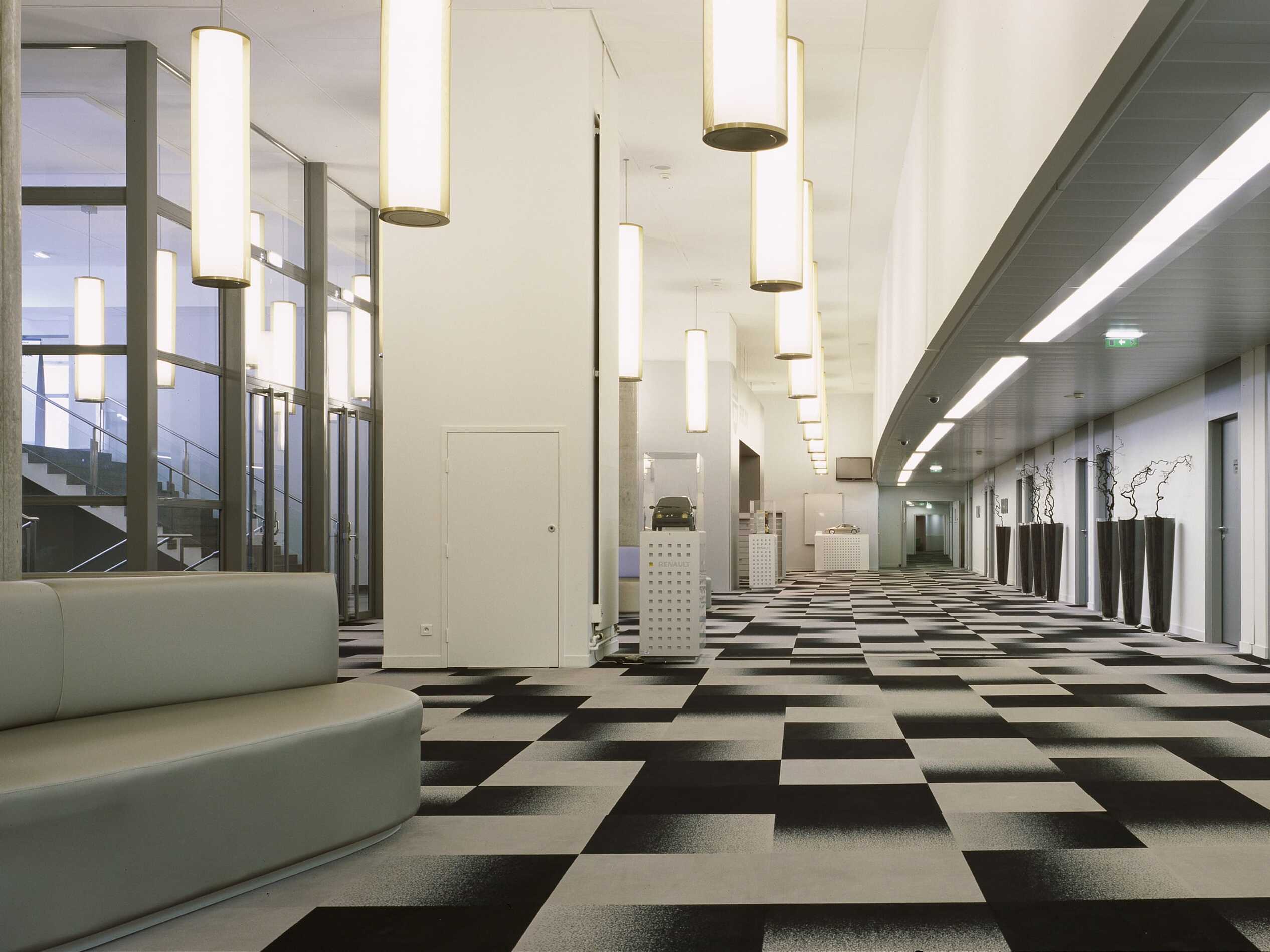 En 2008, pour le dixième anniversaire du Stade de France, Andrée Putman signe la rénovation du couloir des loges VIP et de leurs salons attenants. Le long corridor, baptisé « Espace Andrée Putman », déploie près de 800 mètres rythmés par des matières sobres et des éclairages profonds qui sculptent l’espace. Dans les salons, parquets gris, moquettes graphiques et mobilier épuré composent un univers élégant, pensé pour accueillir avec dignité et confort les hôtes de marque. Ici, la sobriété devient luxe : une élégance discrète, sans emphase, qui inscrit la modernité dans un cadre institutionnel prestigieux.
