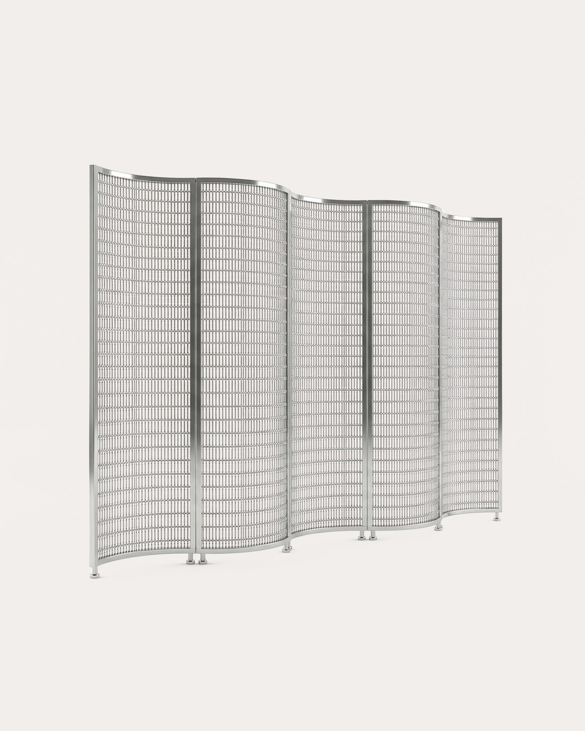 Avec « En toute transparence », Andrée Putman imagine un paravent aux lignes souples et élancées, où la séparation devient respiration. Composé de panneaux subtilement incurvés, l’objet abandonne toute rigidité pour épouser une silhouette fluide, presque mouvante. Il ne cloisonne pas : il suggère, filtre, laisse circuler le regard comme la lumière. La résille métallique, matériau dit « pauvre », y déploie toute sa finesse. Légère, presque immatérielle, elle vibre au moindre changement de lumière. En contraste, les cadres en inox brossé apportent une structure discrète, une rigueur silencieuse qui équilibre l’ensemble. De cette alliance naît une tension délicate entre solidité et transparence, entre présence et effacement. Le paravent devient alors un voile architectural, une frontière sensible qui organise l’espace sans jamais l’enfermer.