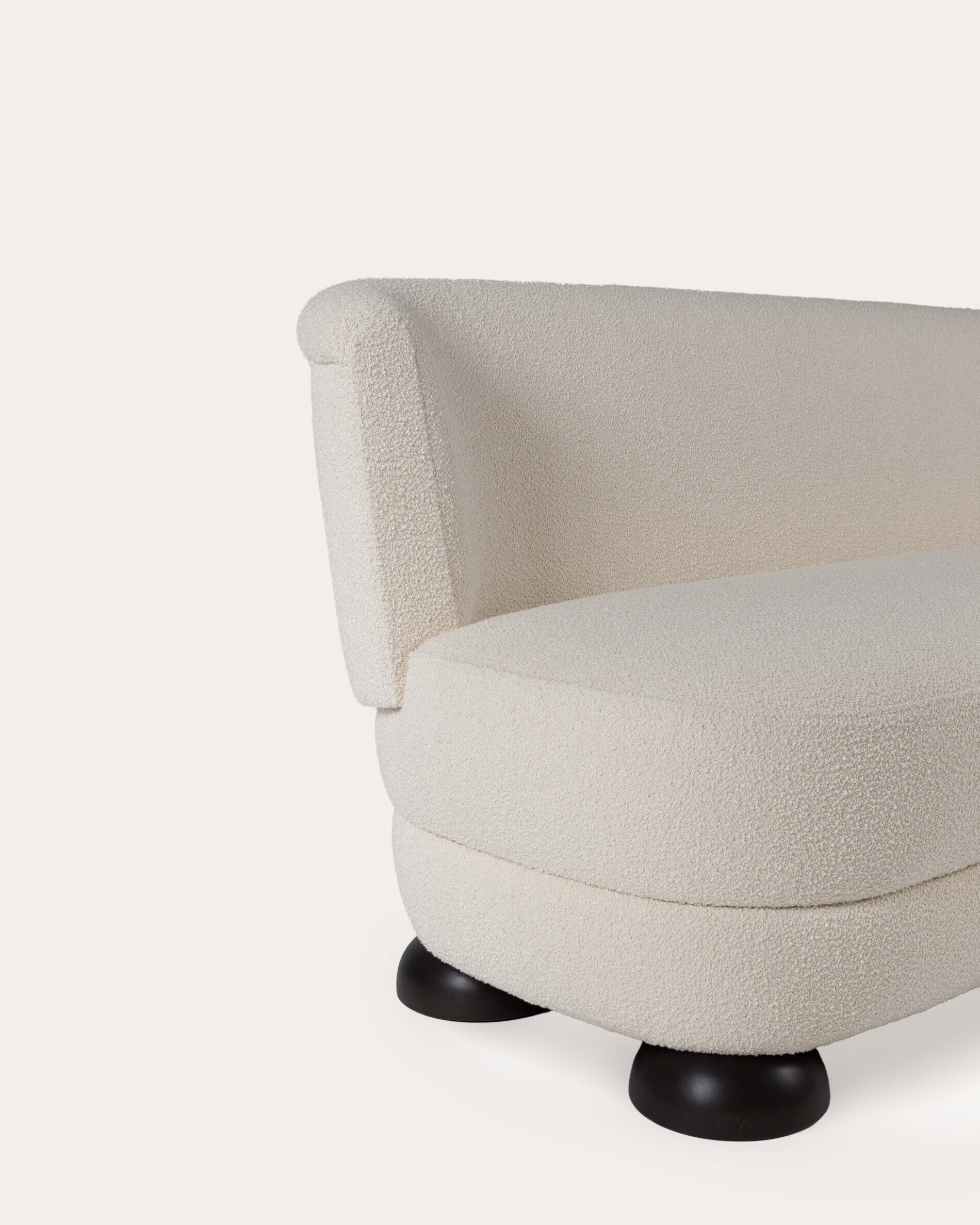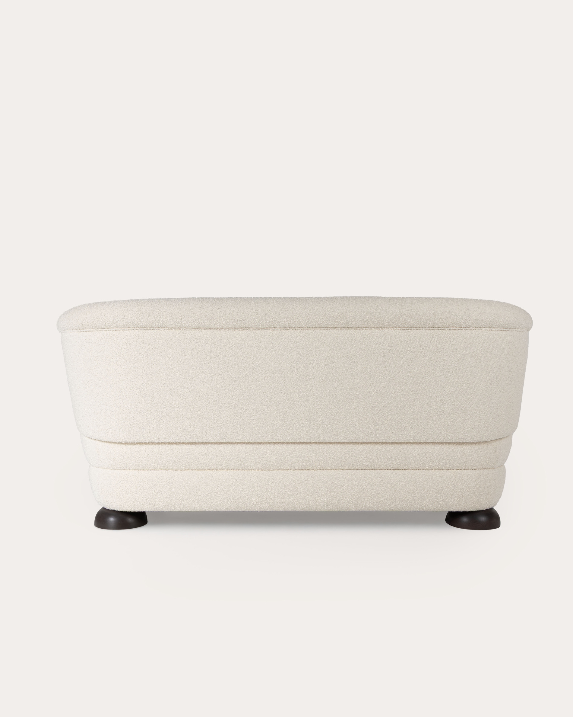 Le canapé Grande Ourse se distingue par ses lignes douces et généreuses, solidement ancré sur quatre pieds en demi sphère. Sa laine bouclée s’accorde à une structure en frêne teinté, mêlant rondeur, confort et rigueur géométrique. Une pièce intemporelle où matières nobles et proportions maîtrisées expriment la signature Putman.
