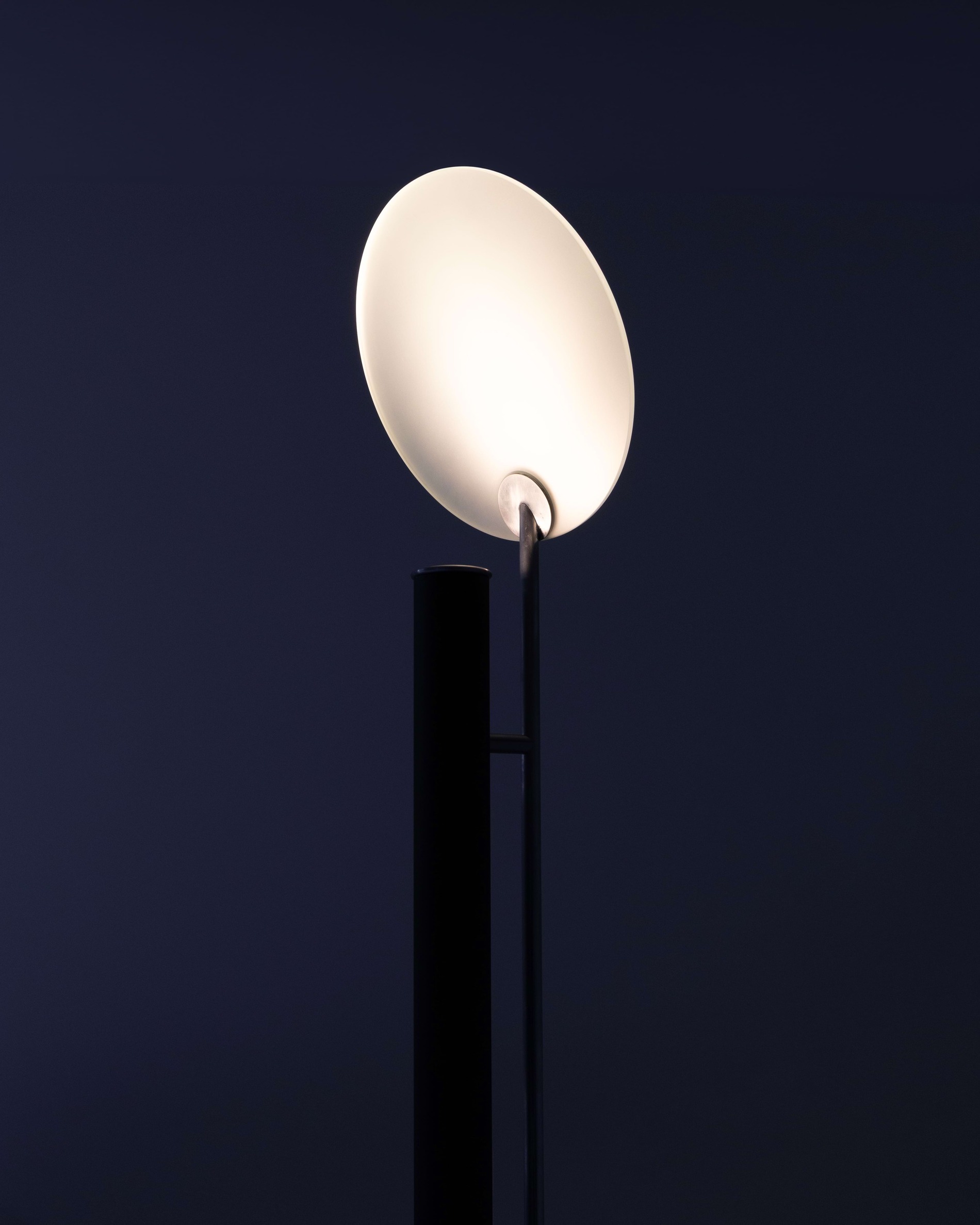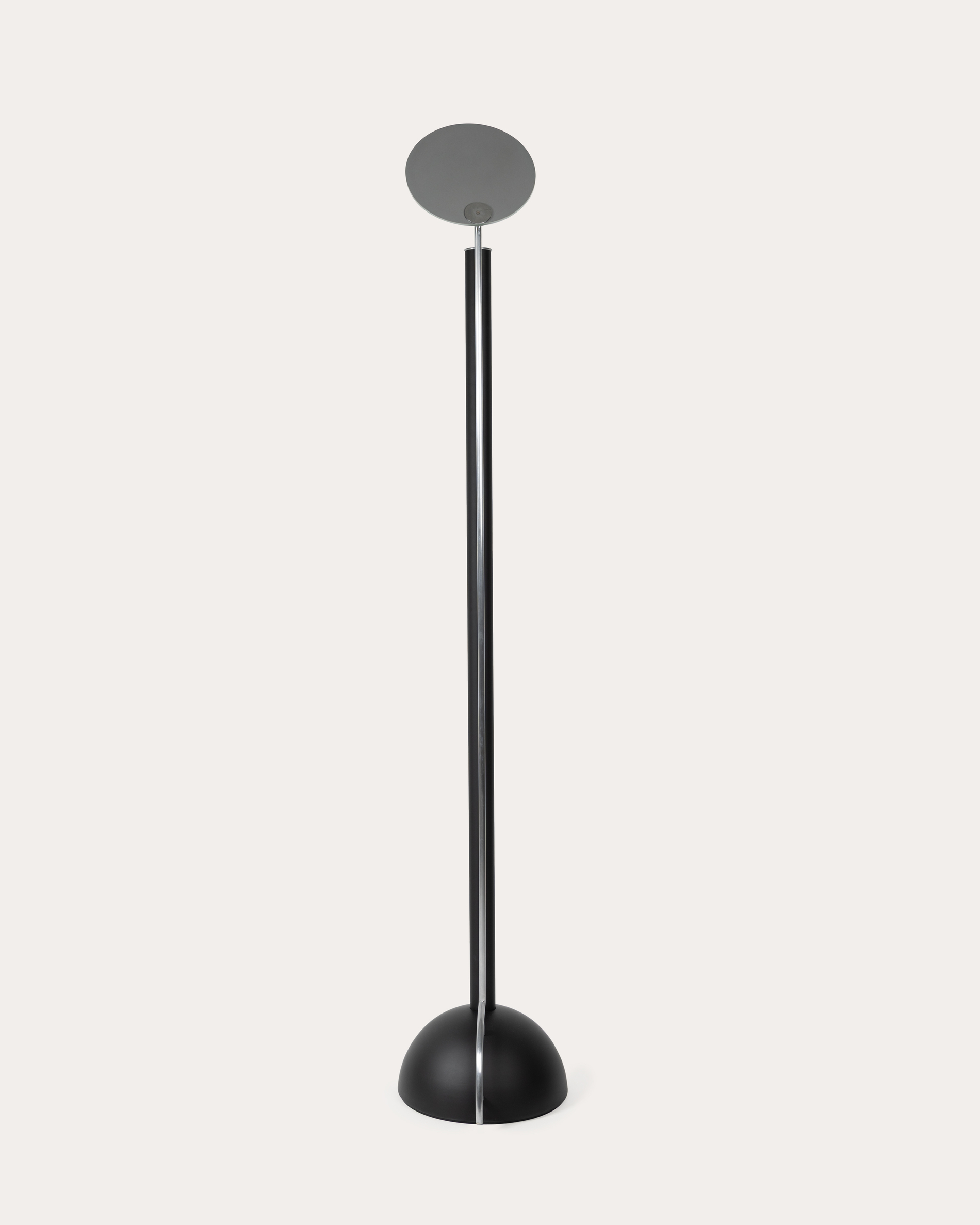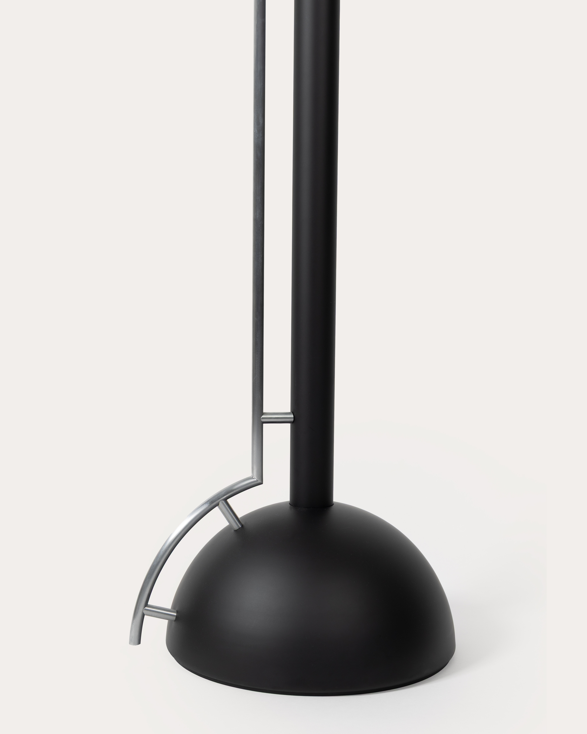 Le lampadaire Tube & Béret s’inscrit dans une composition de volumes géométriques essentiels, réunis avec justesse. La verticalité du tube dialogue avec un socle arrondi qui l’ancre au sol, tandis que le disque supérieur en miroir sablé capte et diffuse la lumière. Le métal thermolaqué noir et l’inox brossé affirment la précision de cette silhouette contemporaine.
